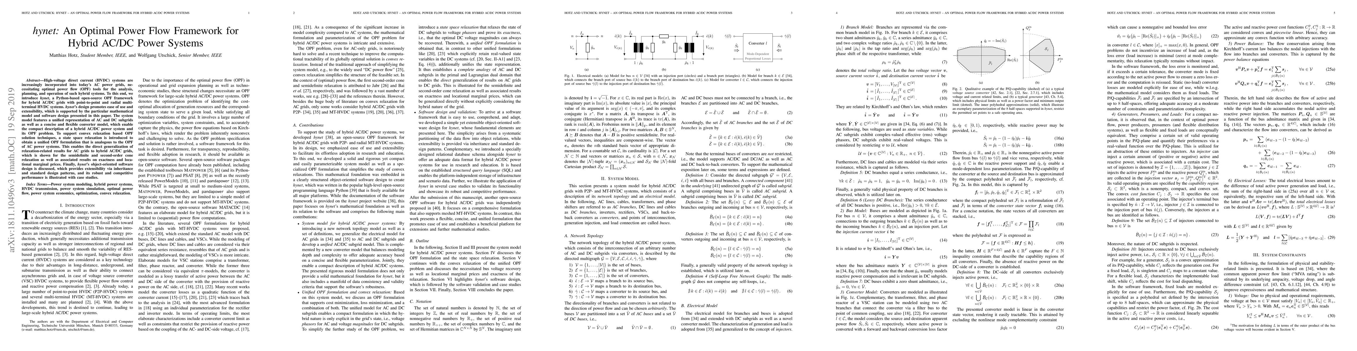 hynet is a Python-based open-source optimal power flow framework designed for hybrid AC/DC power systems, featuring a unified representation of both AC and DC subgrids and a flexible converter model. It supports convex relaxation techniques for efficient OPF solutions, demonstrating robust performance through case studies.