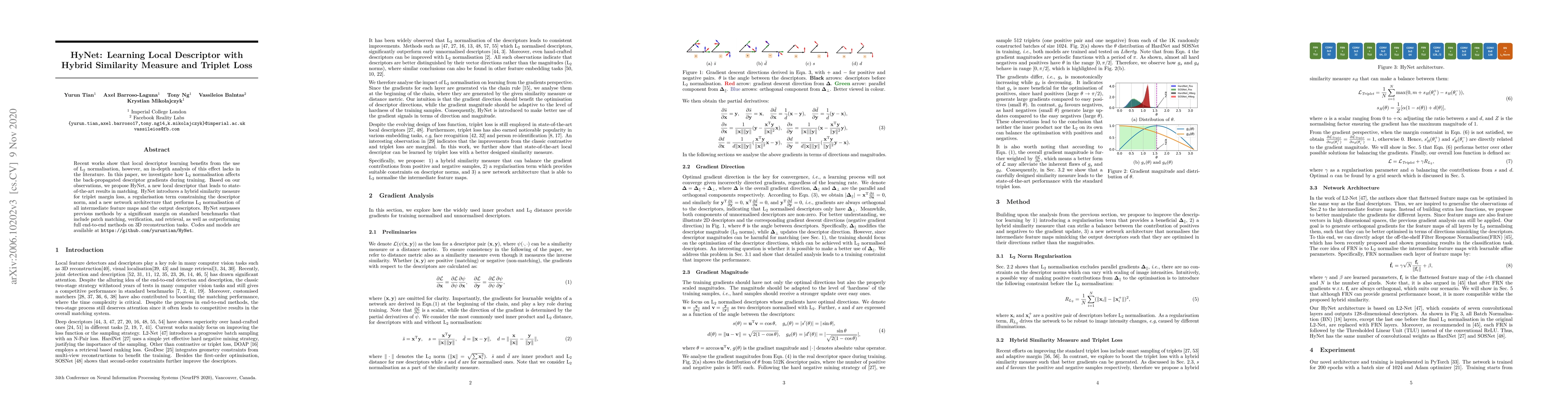 Researchers introduce HyNet, a local descriptor that achieves state-of-the-art results in matching tasks, by combining hybrid similarity measures with L2 normalization.