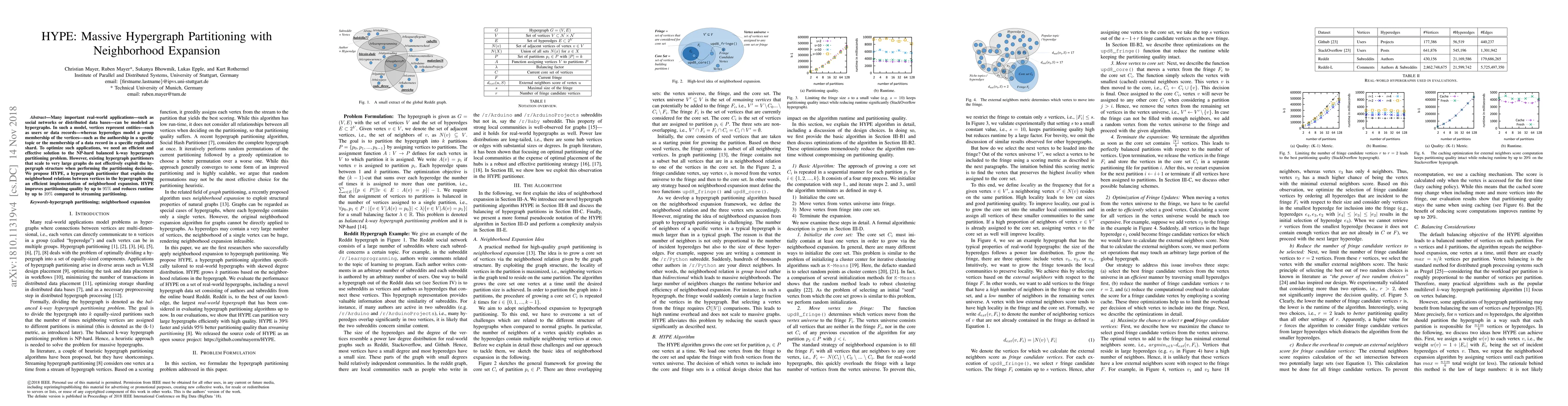 HYPE is a novel hypergraph partitioner that leverages neighborhood expansion to improve the partitioning of large hypergraphs, significantly enhancing both the quality and efficiency of the partitioning process compared to existing methods. This approach is particularly effective for applications modeled as hypergraphs, such as social networks and distributed databases.