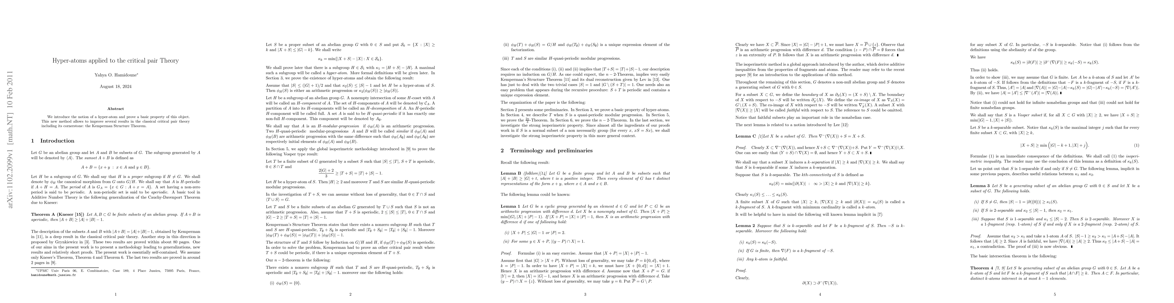 We introduce the notion of a hyper-atom and prove a basic property of this object. This new method allows to improve several results in the classical critical pair theory including its cornerstone: the Kemperman Structure Theorem.