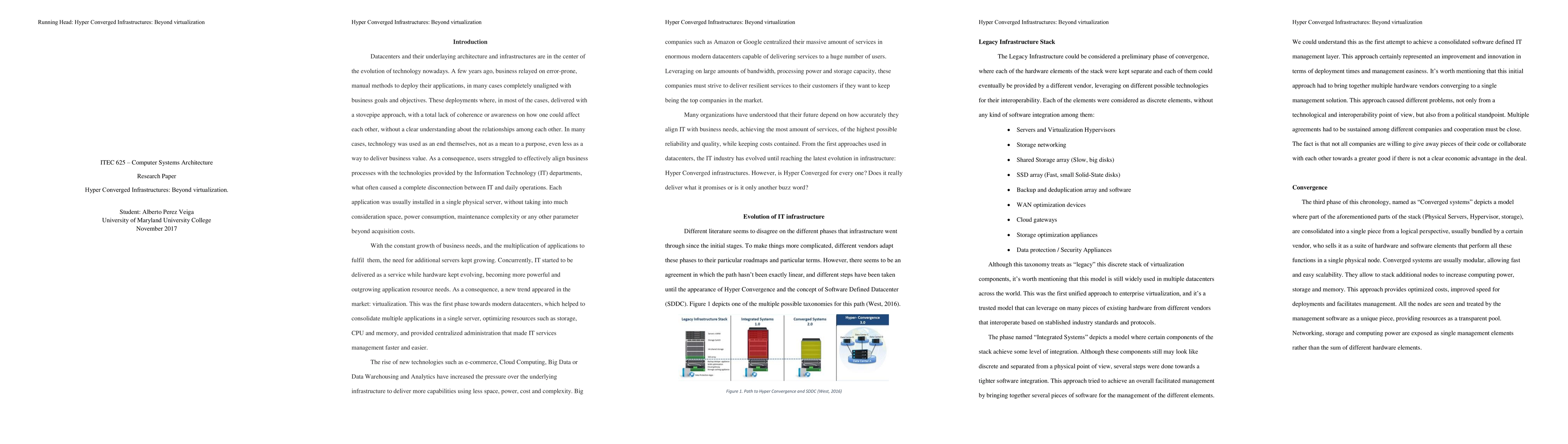 Hyper Convergence has brought virtualization and IT strategies to a new level. Datacenters are undergoing a deep paradigm shift from a hardware-centric to an application-centric approach which leverages on software defined architectures, while IT is more and more being delivered as services rather than assets or products. Throughout different evolving phases since the initial attempts to convergence, the concept has been refined down to a level where,ultimately, a whole datacenter could be fully managed from a centralized single point, abstracting the whole hardware layer and exposing it to the administrators as a transparent pool of resources. This paper analyzes the evolution of infrastructures and tries to dig into the reality and convenience of Hyper Convergence.