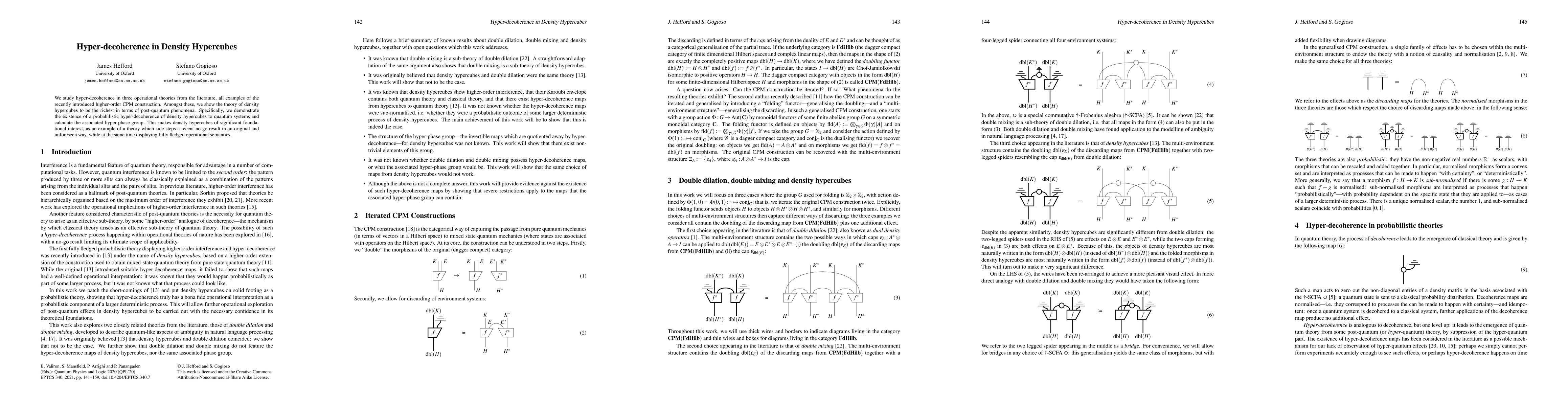 We study hyper-decoherence in three operational theories from the literature, all examples of the recently introduced higher-order CPM construction. Amongst these, we show the theory of density hypercubes to be the richest in terms of post-quantum phenomena. Specifically, we demonstrate the existence of a probabilistic hyper-decoherence of density hypercubes to quantum systems and calculate the associated hyper-phase group. This makes density hypercubes of significant foundational interest, as an example of a theory which side-steps a recent no-go result in an original and unforeseen way, while at the same time displaying fully fledged operational semantics.
