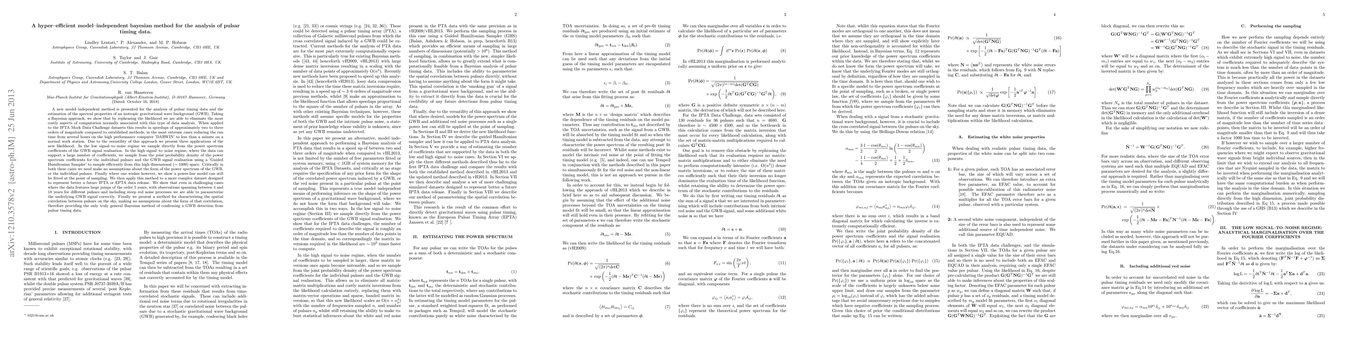 A new model independent method is presented for the analysis of pulsar timing data and the estimation of the spectral properties of an isotropic gravitational wave background (GWB). We show that by rephrasing the likelihood we are able to eliminate the most costly aspects of computation normally associated with this type of data analysis. When applied to the International Pulsar Timing Array Mock Data Challenge data sets this results in speedups of approximately 2 to 3 orders of magnitude compared to established methods. We present three applications of the new likelihood. In the low signal to noise regime we sample directly from the power spectrum coefficients of the GWB signal realization. In the high signal to noise regime, where the data can support a large number of coefficients, we sample from the joint probability density of the power spectrum coefficients for the individual pulsars and the GWB signal realization. Critically in both these cases we need make no assumptions about the form of the power spectrum of the GWB, or the individual pulsars. Finally we present a method for characterizing the spatial correlation between pulsars on the sky, making no assumptions about the form of that correlation, and therefore providing the only truly general Bayesian method of confirming a GWB detection from pulsar timing data.