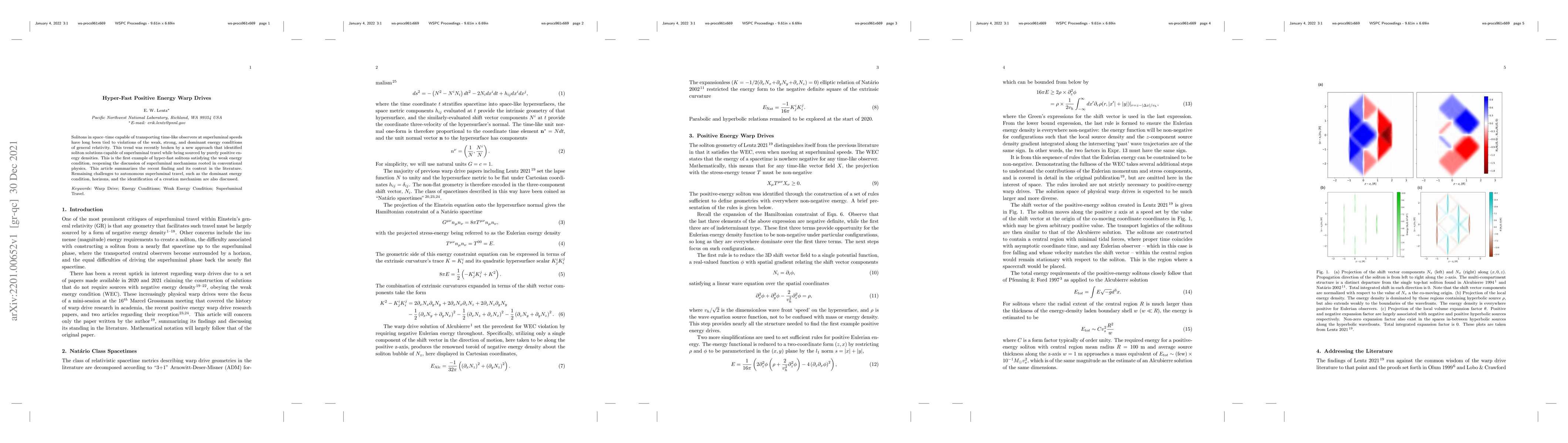Solitons in space-time capable of transporting time-like observers at superluminal speeds have long been tied to violations of the weak, strong, and dominant energy conditions of general relativity. This trend was recently broken by a new approach that identified soliton solutions capable of superluminal travel while being sourced by purely positive energy densities. This is the first example of hyper-fast solitons satisfying the weak energy condition, reopening the discussion of superluminal mechanisms rooted in conventional physics. This article summarizes the recent finding and its context in the literature. Remaining challenges to autonomous superluminal travel, such as the dominant energy condition, horizons, and the identification of a creation mechanism are also discussed.