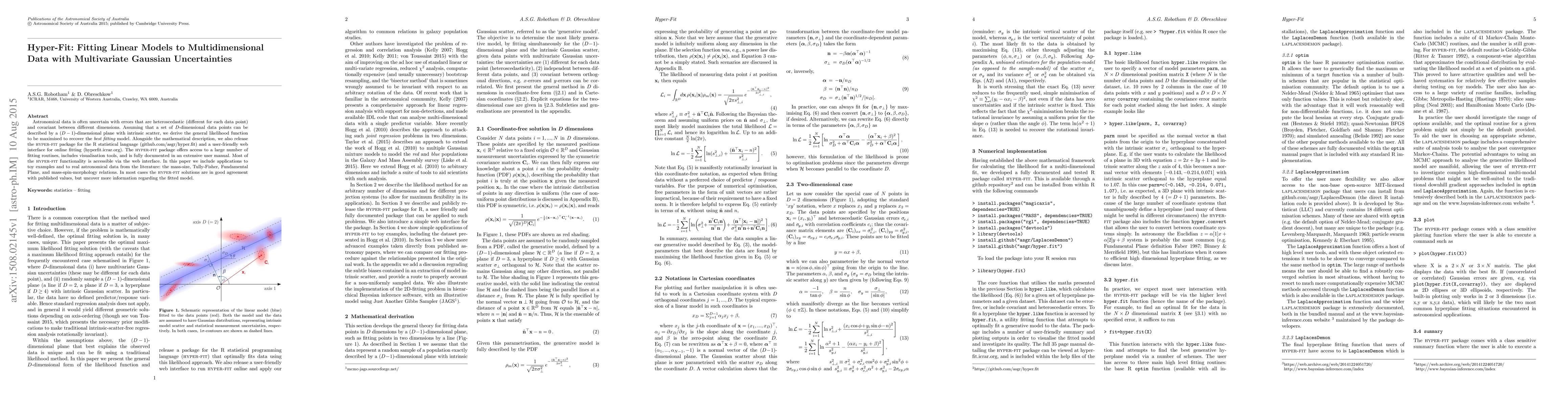 Astronomical data is often uncertain with errors that are heteroscedastic (different for each data point) and covariant between different dimensions. Assuming that a set of D-dimensional data points can be described by a (D - 1)-dimensional plane with intrinsic scatter, we derive the general likelihood function to be maximised to recover the best fitting model. Alongside the mathematical description, we also release the hyper-fit package for the R statistical language (github.com/asgr/hyper.fit) and a user-friendly web interface for online fitting (hyperfit.icrar.org). The hyper-fit package offers access to a large number of fitting routines, includes visualisation tools, and is fully documented in an extensive user manual. Most of the hyper-fit functionality is accessible via the web interface. In this paper we include applications to toy examples and to real astronomical data from the literature: the mass-size, Tully-Fisher, Fundamental Plane, and mass-spin-morphology relations. In most cases the hyper-fit solutions are in good agreement with published values, but uncover more information regarding the fitted model.