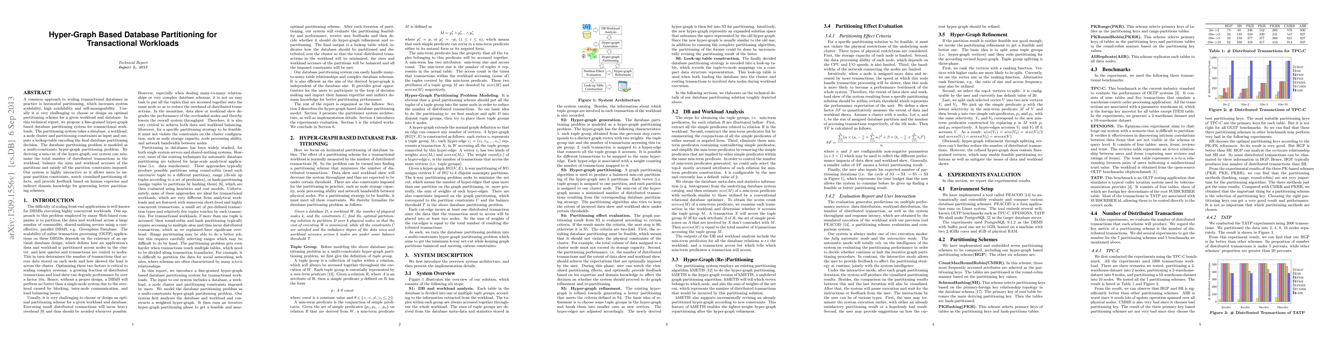 This paper proposes a hyper-graph based system for optimal partitioning of transactional databases, aiming to minimize distributed transactions, balance partition sizes, and satisfy constraints. The system is interactive, allowing users to impose constraints and provide feedback for improved partitioning.