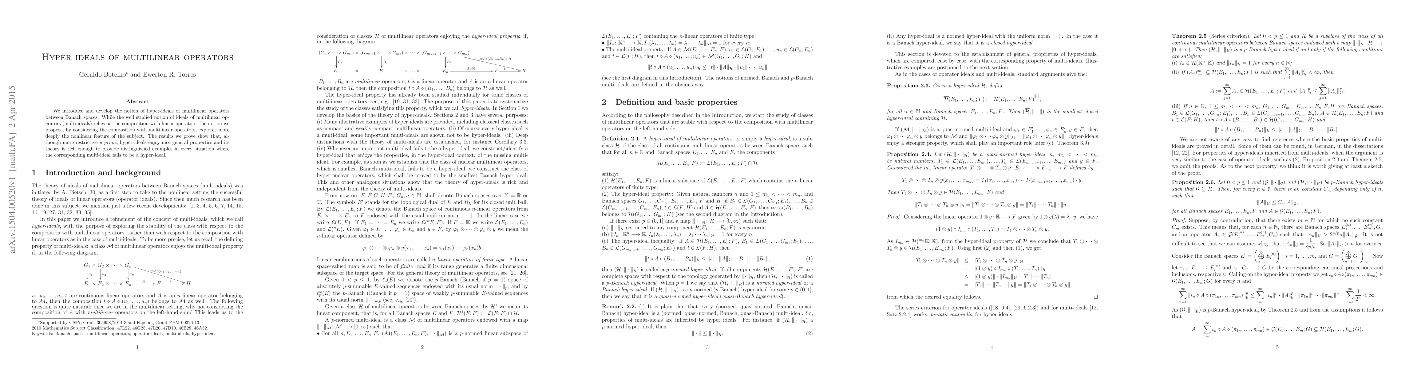 This paper introduces hyper-ideals of multilinear operators between Banach spaces, focusing on composition with multilinear rather than linear operators. The authors demonstrate that hyper-ideals, though more restrictive, possess favorable properties and provide examples where traditional multi-ideals fall short.