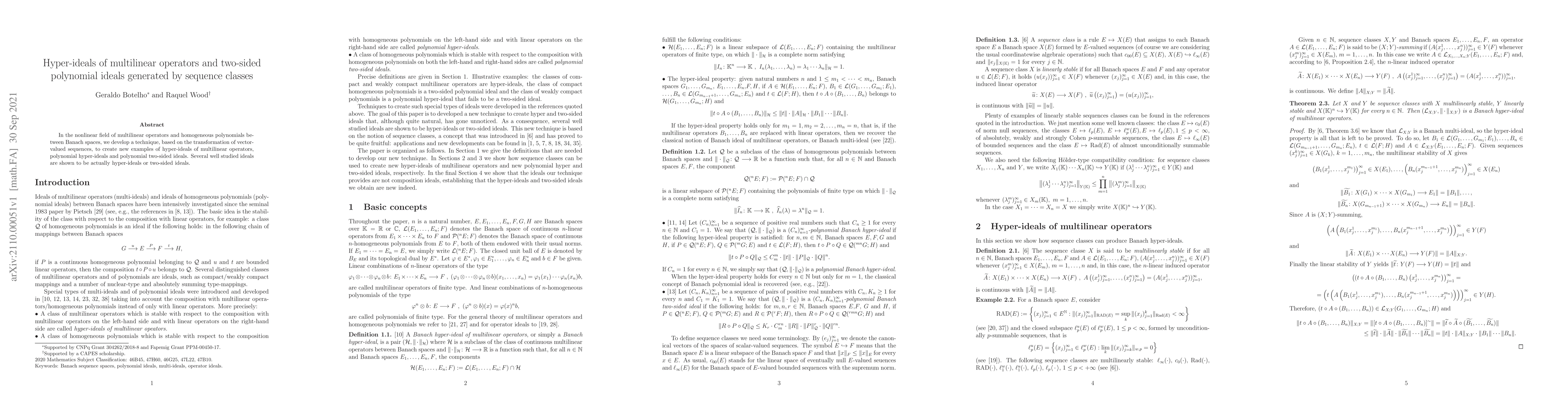 This paper introduces a novel method to generate hyper-ideals of multilinear operators and polynomial two-sided ideals using transformations of vector-valued sequences. It demonstrates that several previously studied ideals are in fact hyper-ideals or two-sided ideals.