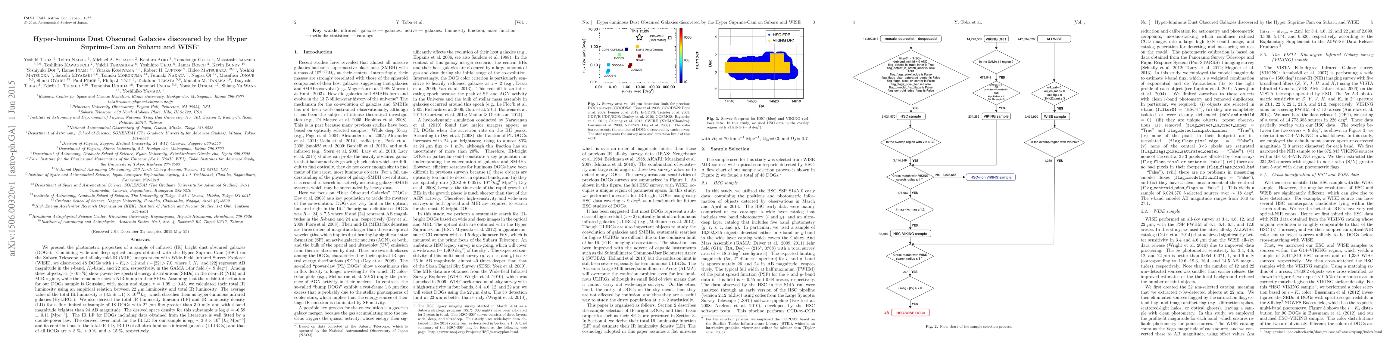 This study identifies hyper-luminous dust-obscured galaxies (DOGs) using data from the Hyper Suprime-Cam on Subaru and WISE, finding 48 DOGs with extreme infrared brightness. These galaxies exhibit high total IR luminosity, classifying them as hyper-luminous infrared galaxies (HyLIRGs), with significant contributions to the overall IR luminosity density.
