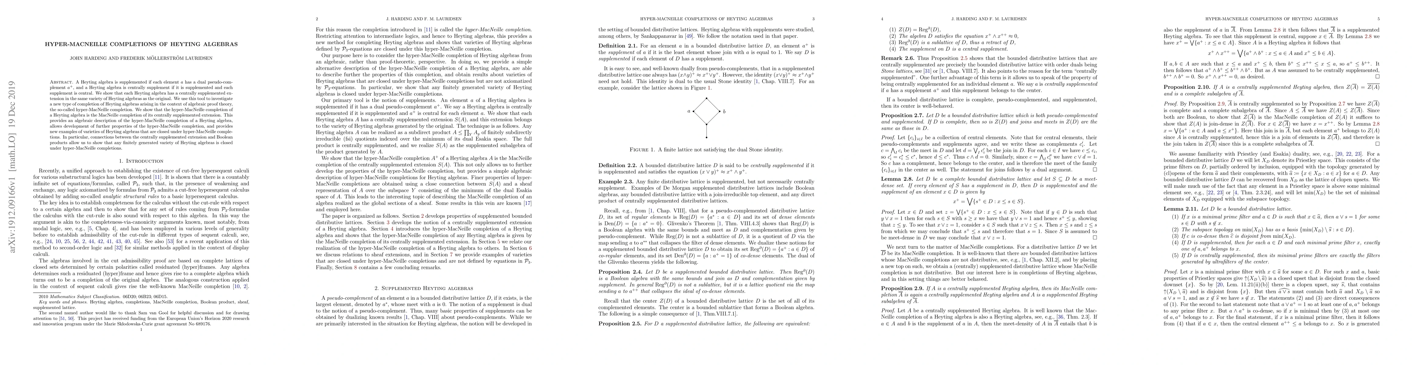A Heyting algebra is supplemented if each element $a$ has a dual pseudo-complement $a^+$, and a Heyting algebra is centrally supplement if it is supplemented and each supplement is central. We show that each Heyting algebra has a centrally supplemented extension in the same variety of Heyting algebras as the original. We use this tool to investigate a new type of completion of Heyting algebras arising in the context of algebraic proof theory, the so-called hyper-MacNeille completion. We show that the hyper-MacNeille completion of a Heyting algebra is the MacNeille completion of its centrally supplemented extension. This provides an algebraic description of the hyper-MacNeille completion of a Heyting algebra, allows development of further properties of the hyper-MacNeille completion, and provides new examples of varieties of Heyting algebras that are closed under hyper-MacNeille completions. In particular, connections between the centrally supplemented extension and Boolean products allow us to show that any finitely generated variety of Heyting algebras is closed under hyper-MacNeille completions.