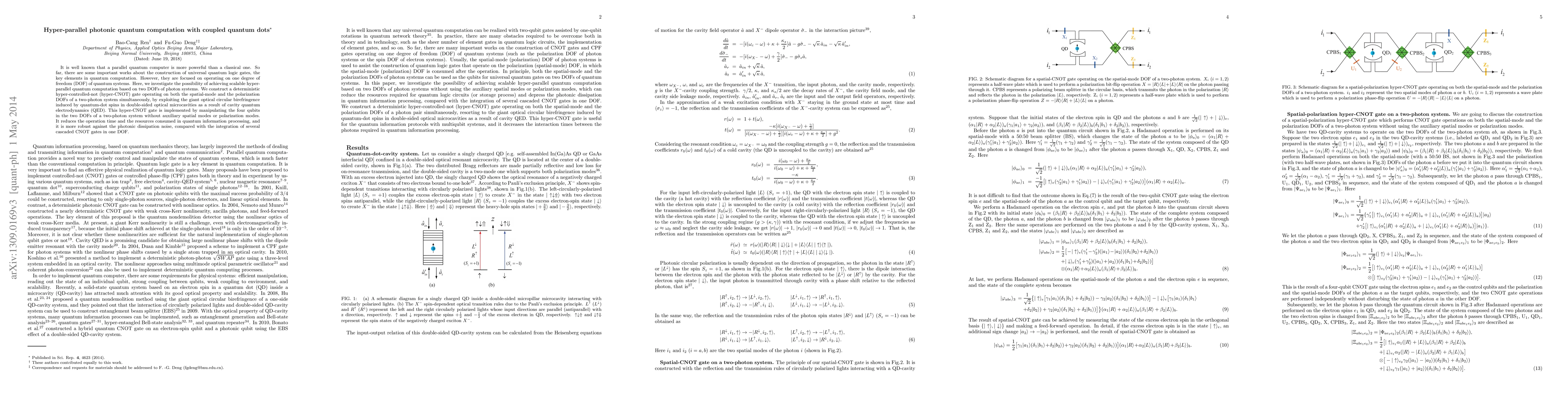 This paper proposes a scalable hyper-parallel quantum computation method using coupled quantum dots in optical microcavities to manipulate two degrees of freedom (DOFs) in photon systems. It introduces a deterministic hyper-controlled-not gate that operates on spatial-mode and polarization DOFs simultaneously, significantly reducing operation time and resource consumption compared to conventional methods.