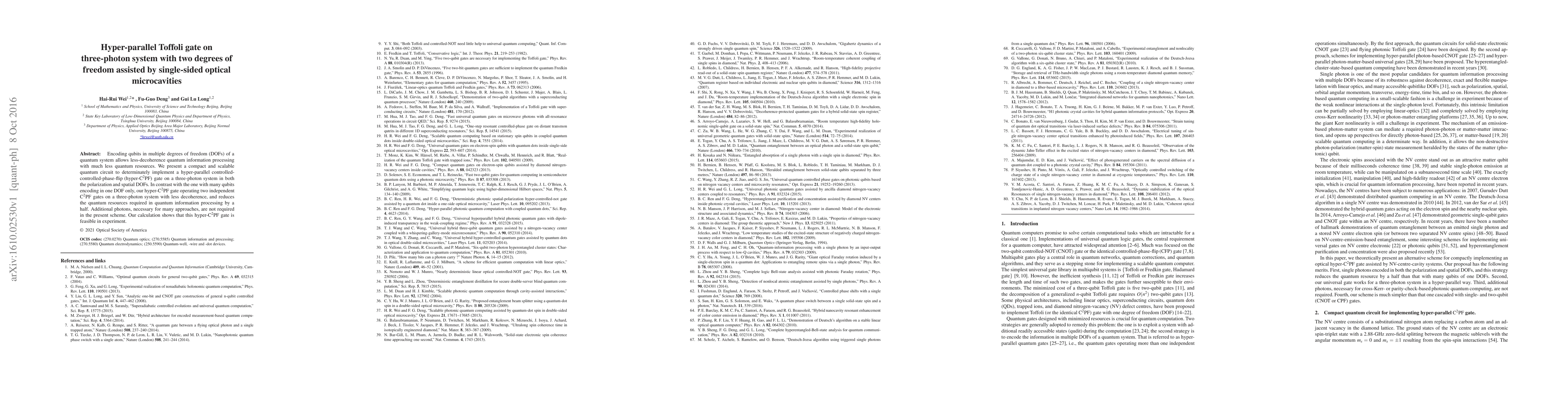 Encoding qubits in multiple degrees of freedom (DOFs) of a quantum system allows less-decoherence quantum information processing with much less quantum resources. We present a compact and scalable quantum circuit to determinately implement a hyper-parallel controlled-controlled-phase-flip (hyper-$\rm{C^2PF}$) gate on a three-photon system in both the polarization and spatial DOFs. In contrast with the one with many qubits encoding in one DOF only, our hyper-$\rm{C^2PF}$ gate operating two independent $\rm{C^2PF}$ gates on a three-photon system with less decoherence, and reduces the quantum resources required in quantum information processing by a half. Additional photons, necessary for many approaches, are not required in the present scheme. Our calculation shows that this hyper-$\rm{C^2PF}$ gate is feasible in experiment.