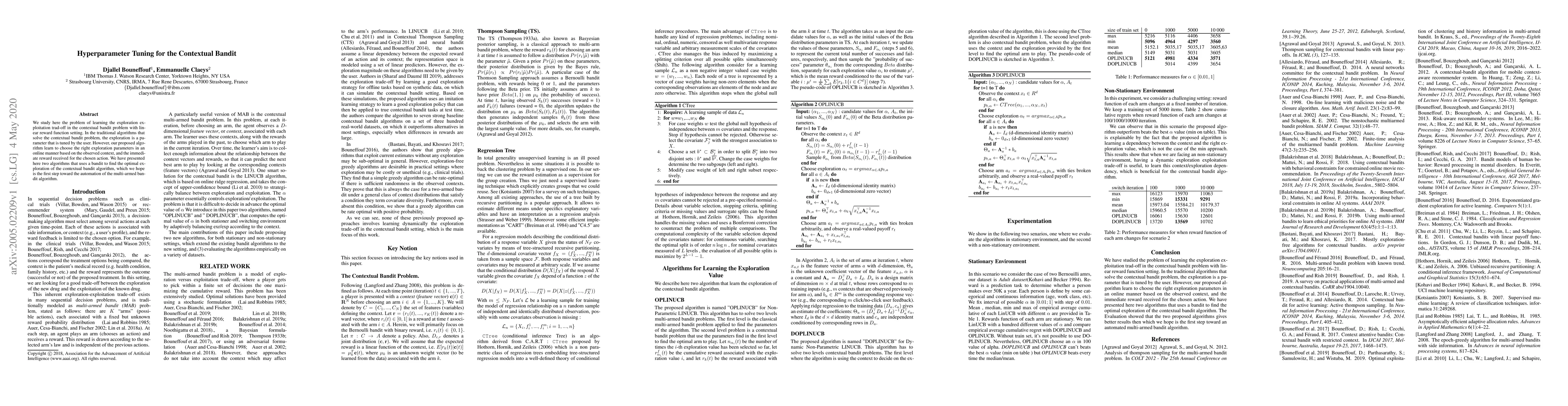 We study here the problem of learning the exploration exploitation trade-off in the contextual bandit problem with linear reward function setting. In the traditional algorithms that solve the contextual bandit problem, the exploration is a parameter that is tuned by the user. However, our proposed algorithm learn to choose the right exploration parameters in an online manner based on the observed context, and the immediate reward received for the chosen action. We have presented here two algorithms that uses a bandit to find the optimal exploration of the contextual bandit algorithm, which we hope is the first step toward the automation of the multi-armed bandit algorithm.