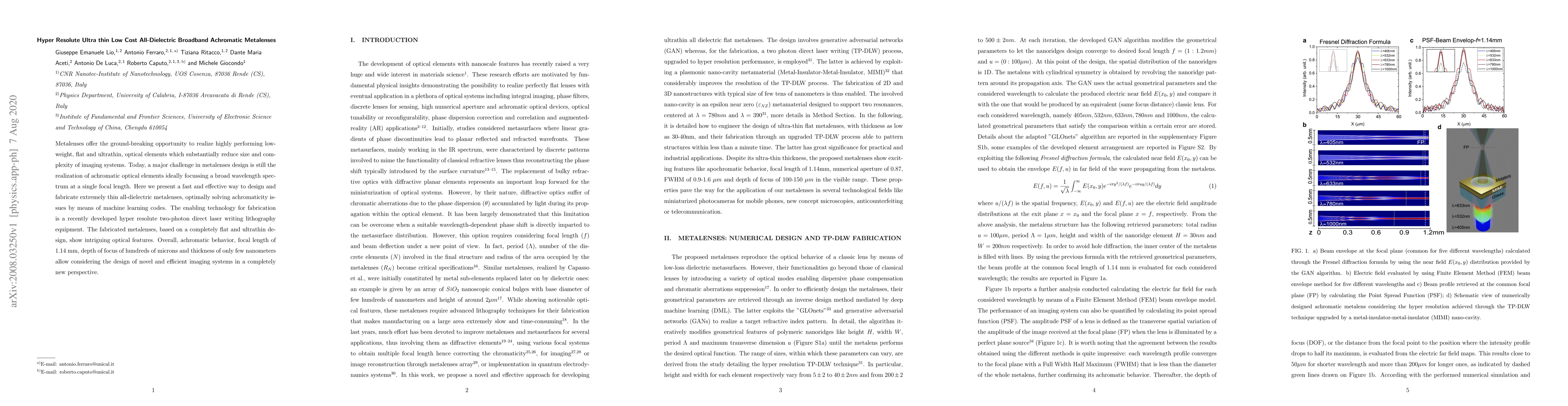 This paper presents a novel method for designing and fabricating ultra-thin, low-cost all-dielectric metalenses using machine learning and hyper-resolute lithography, achieving achromaticity over a broad spectrum with minimal thickness and depth of focus. The resulting metalenses enable innovative, compact imaging systems.