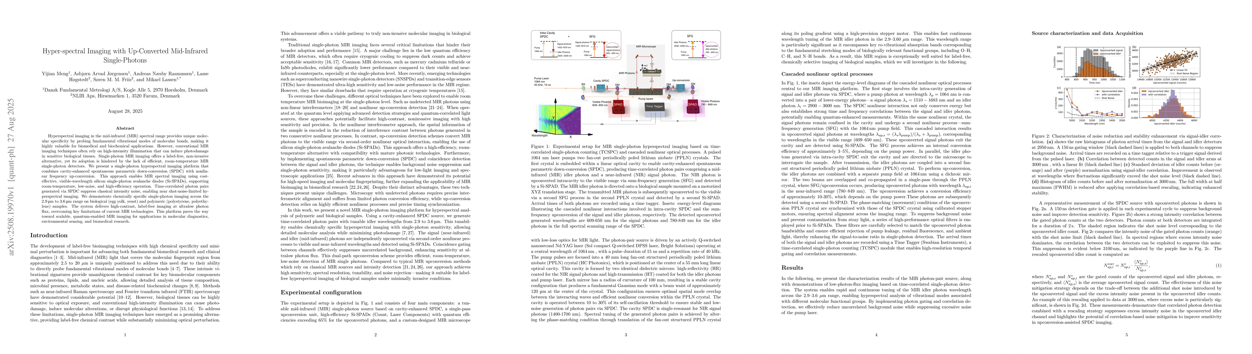 Hyperspectral imaging in the mid-infrared (MIR) spectral range provides unique molecular specificity by probing fundamental vibrational modes of molecular bonds, making it highly valuable for biomedical and biochemical applications. However, conventional MIR imaging techniques often rely on high-intensity illumination that can induce photodamage in sensitive biological tissues. Single-photon MIR imaging offers a label-free, non-invasive alternative, yet its adoption is hindered by the lack of efficient, room-temperature MIR single-photon detectors. We present a single-photon hyperspectral imaging platform that combines cavity-enhanced spontaneous parametric down-conversion (SPDC) with nonlinear frequency up-conversion. This approach enables MIR spectral imaging using cost-effective, visible-wavelength silicon single-photon avalanche diodes (Si-SPADs), supporting room-temperature, low-noise, and high-efficiency operation. Time-correlated photon pairs generated via SPDC suppress classical intensity noise, enabling near shot-noise-limited hyperspectral imaging. We demonstrate chemically specific single-photon imaging across the \SIrange{2.9}{3.6}{\micro\meter} range on biological (egg yolk, yeast) and polymeric (polystyrene, polyethylene) samples. The system delivers high-contrast, label-free imaging at ultralow photon flux, overcoming key limitations of current MIR technologies. This platform paves the way toward scalable, quantum-enabled MIR imaging for applications in molecular diagnostics, environmental sensing, and biomedical research.