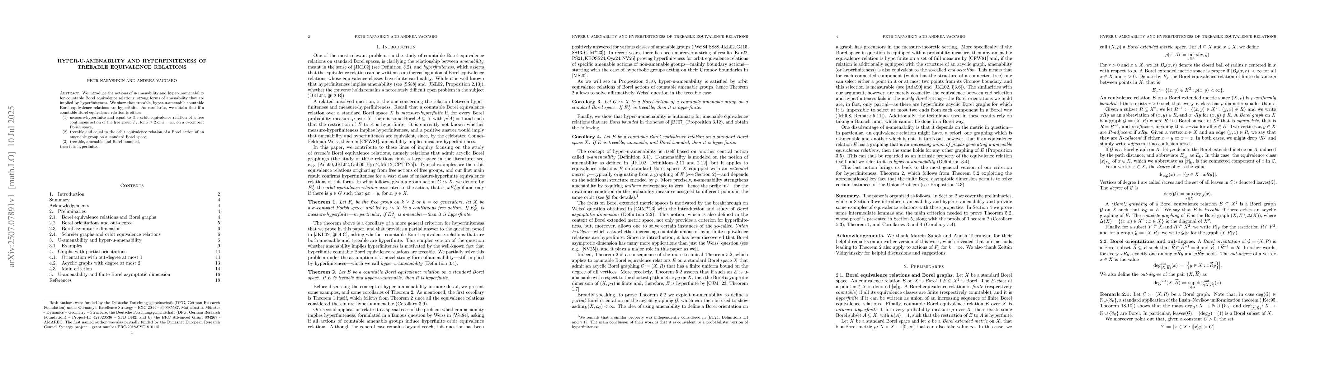 We introduce the notions of u-amenability and hyper-u-amenability for countable Borel equivalence relations, strong forms of amenability that are implied by hyperfiniteness. We show that treeable, hyper-u-amenable countable Borel equivalence relations are hyperfinite. One of the corollaries that we get is that if a countable Borel equivalence relation is measure-hyperfinite and equal to the orbit equivalence relation of a free continuous action of a free group (with $k \ge 2$ or $k = \infty$ generators) on a $\sigma$-compact Polish space, then it is hyperfinite. We also obtain that if a countable Borel equivalence relation is treeable and equal to the orbit equivalence relation of a Borel action of an amenable group on a standard Borel space, or if it is treeable, amenable and Borel bounded, then it is hyperfinite.
