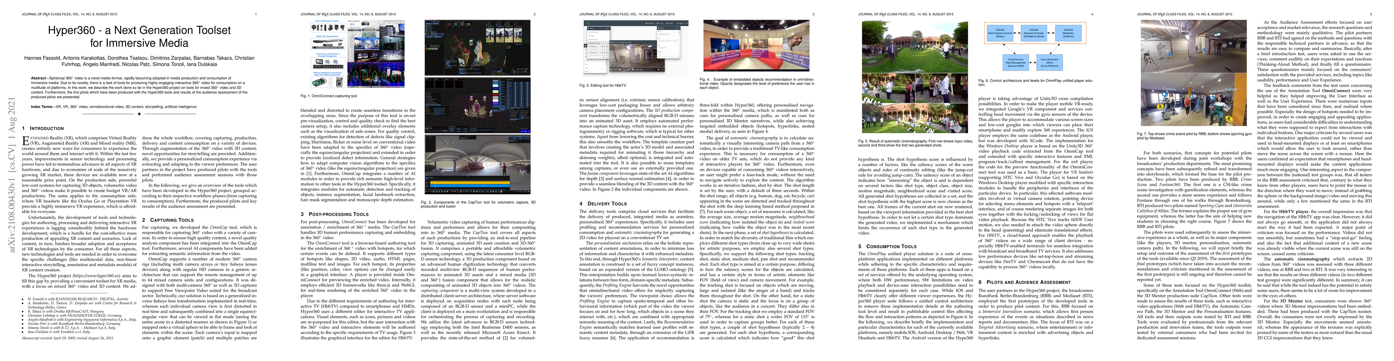 The Hyper360 project aims to develop tools for creating interactive 360° video and 3D content. Initial pilots produced with these tools have been assessed by audiences, providing valuable feedback.