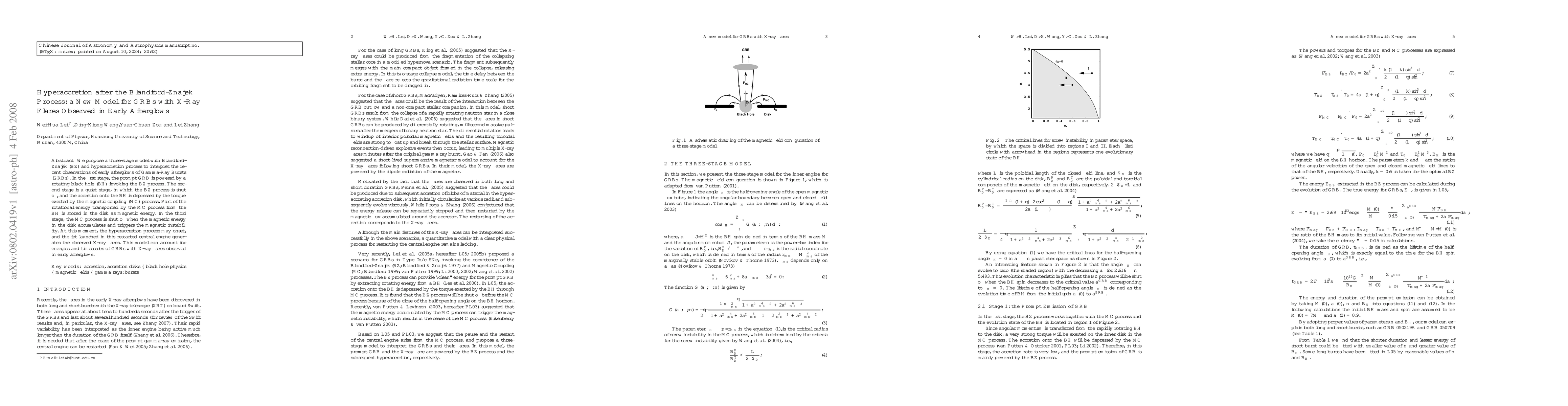 This paper proposes a three-stage model for Gamma-Ray Bursts (GRBs) involving the Blandford-Znajek and hyperaccretion processes, explaining early afterglows with X-ray flares. The model includes a GRB powered by the Blandford-Znajek process, a quiet stage with depressed accretion, and a final stage where magnetic instability triggers hyperaccretion and X-ray flares.