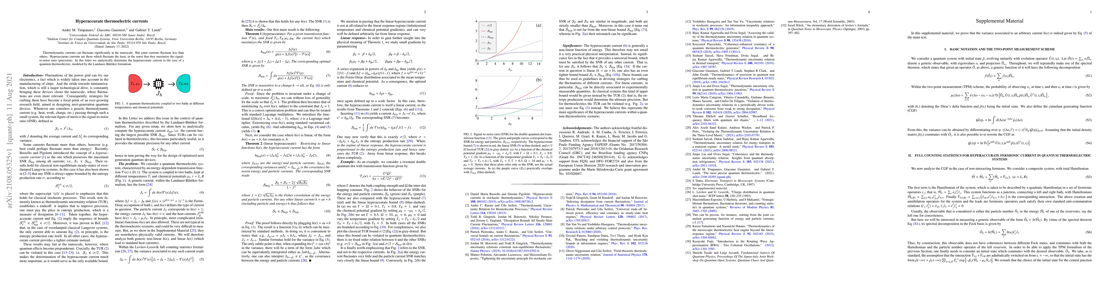 Researchers analyzed thermodynamic currents in quantum thermoelectric systems to identify hyperaccurate currents that maximize signal-to-noise ratio. They found a specific current configuration that minimizes fluctuations and enhances precision.