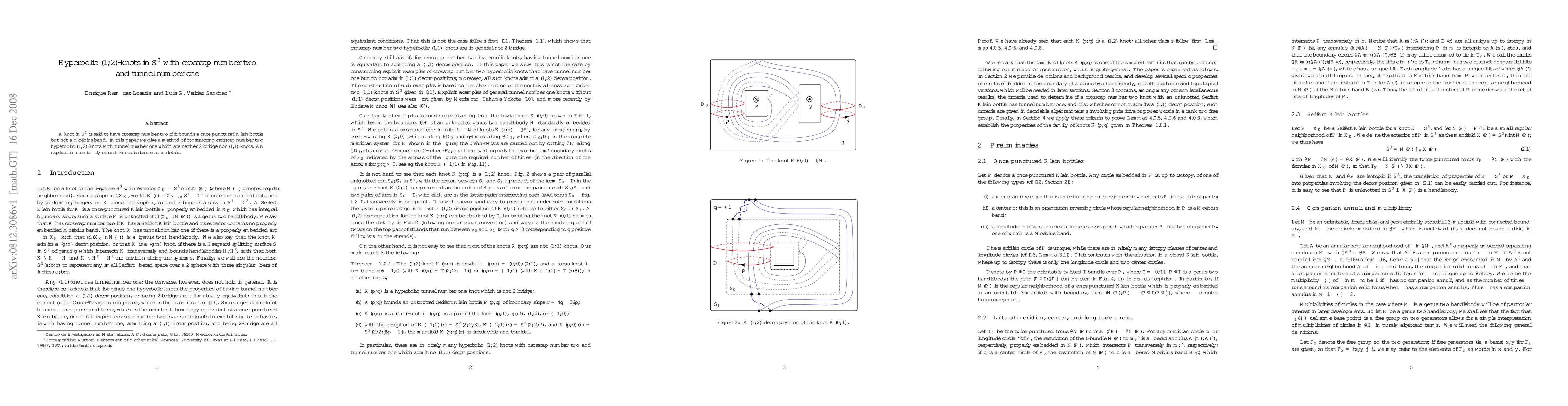 A knot in S^3 is said to have crosscap number two if it bounds a once-punctured Klein bottle but not a Moebius band. In this paper we give a method of constructing crosscap number two hyperbolic (1,2)-knots with tunnel number one which are neither 2-bridge nor (1,1)-knots. An explicit infinite family of such knots is discussed in detail.