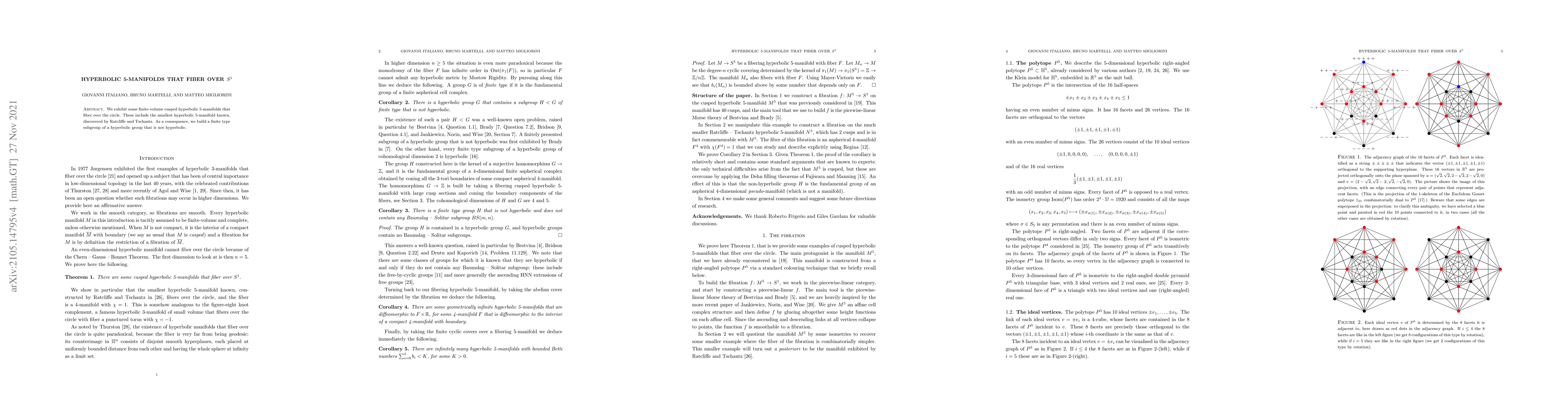 We exhibit some finite-volume cusped hyperbolic 5-manifolds that fiber over the circle. These include the smallest hyperbolic 5-manifold known, discovered by Ratcliffe and Tschantz. As a consequence, we build a finite type subgroup of a hyperbolic group that is not hyperbolic.