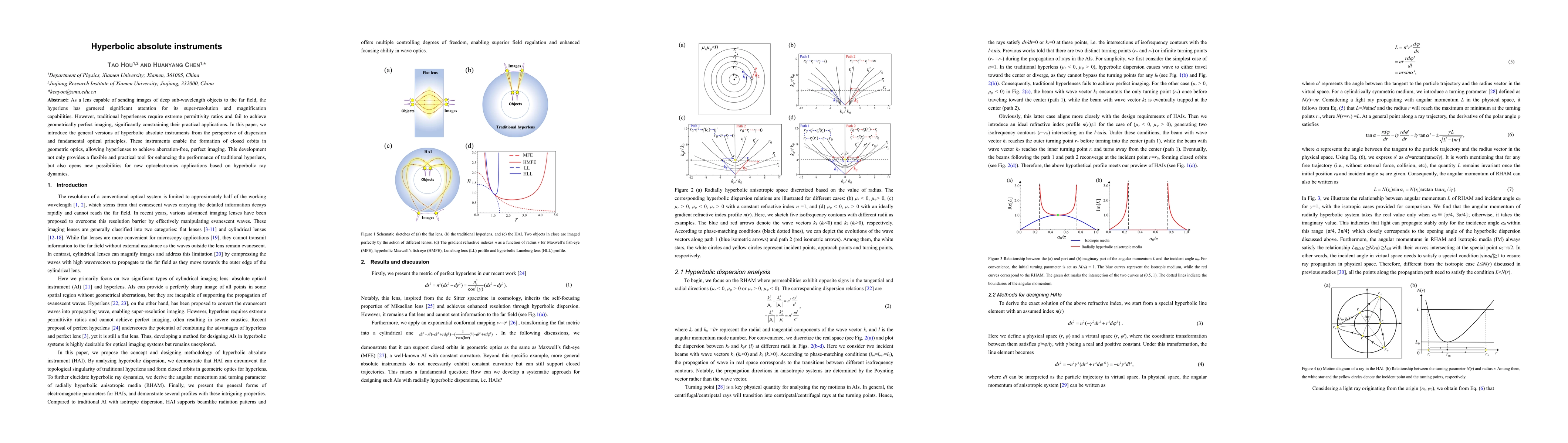 The paper presents a theoretical framework for HAIs, deriving propagation processes of light rays in the hyperbolic anisotropic medium (RHAM) with multiple degrees of freedom, which could stimulate interest in more intriguing hyperbolic devices with novel functionalities.