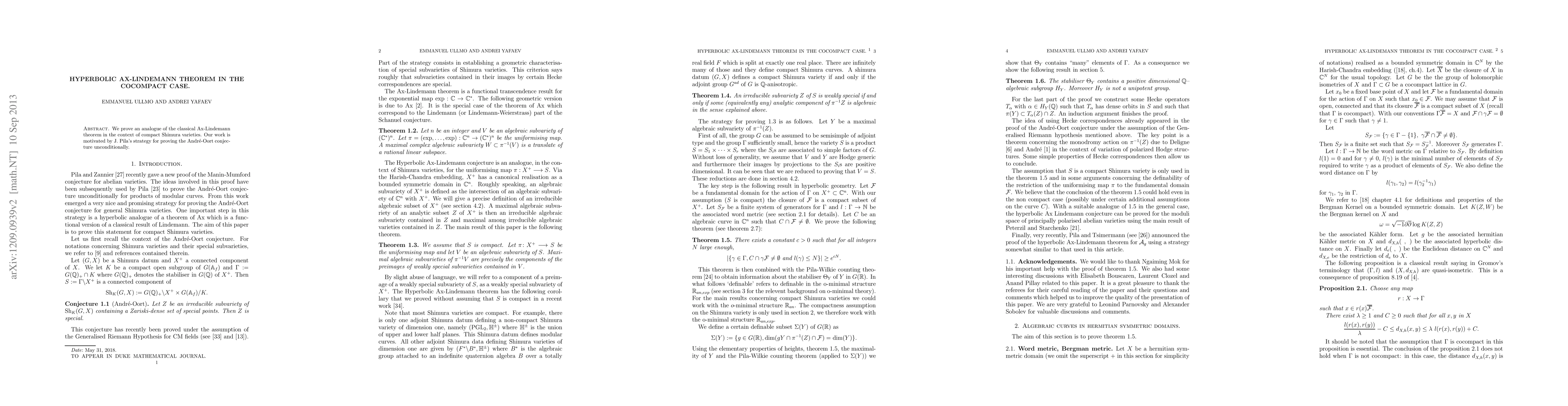 This paper establishes an analogue of the Ax-Lindemann theorem for compact Shimura varieties, utilizing strategies from J. Pila's work to support the unconditional proof of the André-Oort conjecture. The result extends classical number theory to more complex algebraic geometry settings.