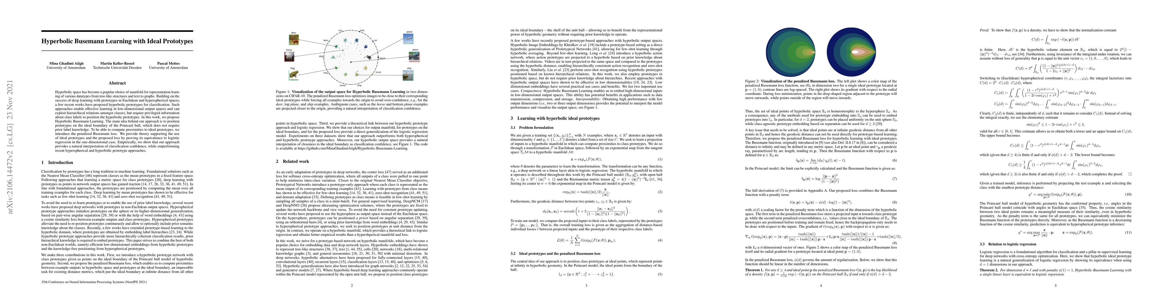 Hyperbolic space has become a popular choice of manifold for representation learning of various datatypes from tree-like structures and text to graphs. Building on the success of deep learning with prototypes in Euclidean and hyperspherical spaces, a few recent works have proposed hyperbolic prototypes for classification. Such approaches enable effective learning in low-dimensional output spaces and can exploit hierarchical relations amongst classes, but require privileged information about class labels to position the hyperbolic prototypes. In this work, we propose Hyperbolic Busemann Learning. The main idea behind our approach is to position prototypes on the ideal boundary of the Poincar\'e ball, which does not require prior label knowledge. To be able to compute proximities to ideal prototypes, we introduce the penalised Busemann loss. We provide theory supporting the use of ideal prototypes and the proposed loss by proving its equivalence to logistic regression in the one-dimensional case. Empirically, we show that our approach provides a natural interpretation of classification confidence, while outperforming recent hyperspherical and hyperbolic prototype approaches.