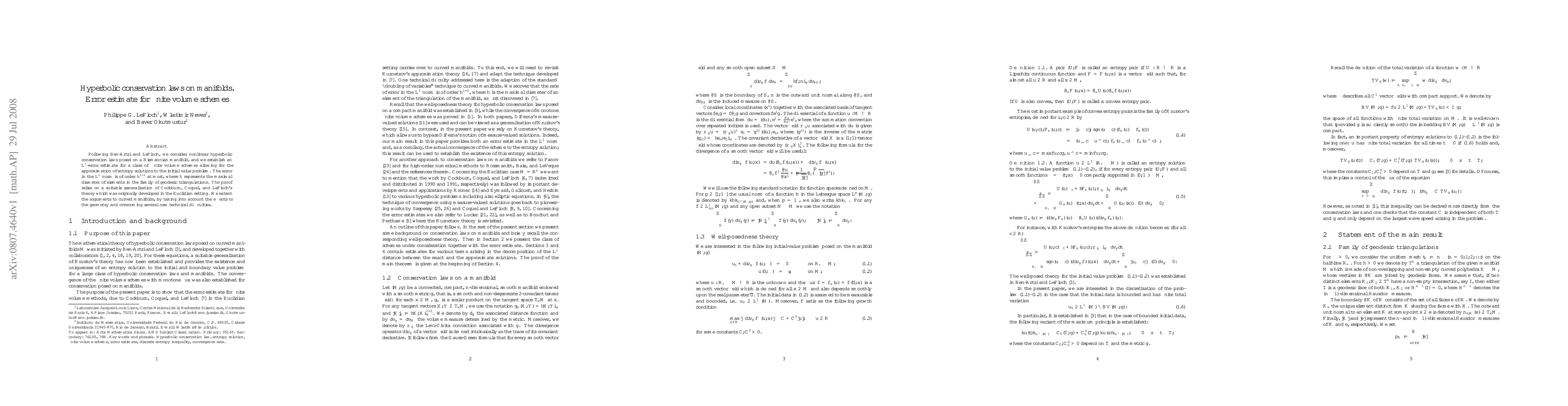 This paper establishes an L1-error estimate for finite volume schemes used to approximate entropy solutions of hyperbolic conservation laws on Riemannian manifolds. The error is shown to be of order h^(1/4), where h is the maximal diameter of the triangulation elements, leveraging a generalized theory from Euclidean settings to account for manifold curvature.