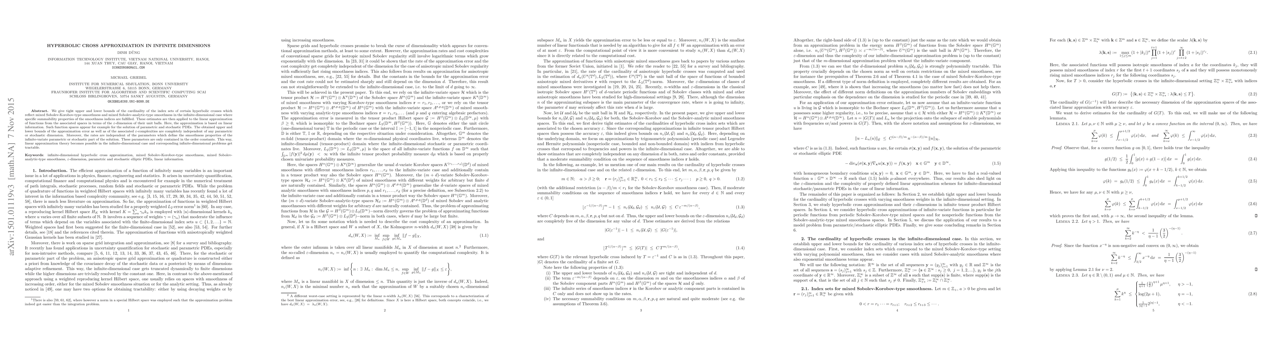 This paper provides tight bounds for the cardinality of index sets in hyperbolic crosses reflecting mixed smoothness types in infinite dimensions, and applies these to linear approximation of functions in associated spaces. The derived approximation error bounds and $\varepsilon$-complexities are dimension-independent and parameter-independent, facilitating linear approximation theory in infinite dimensions.