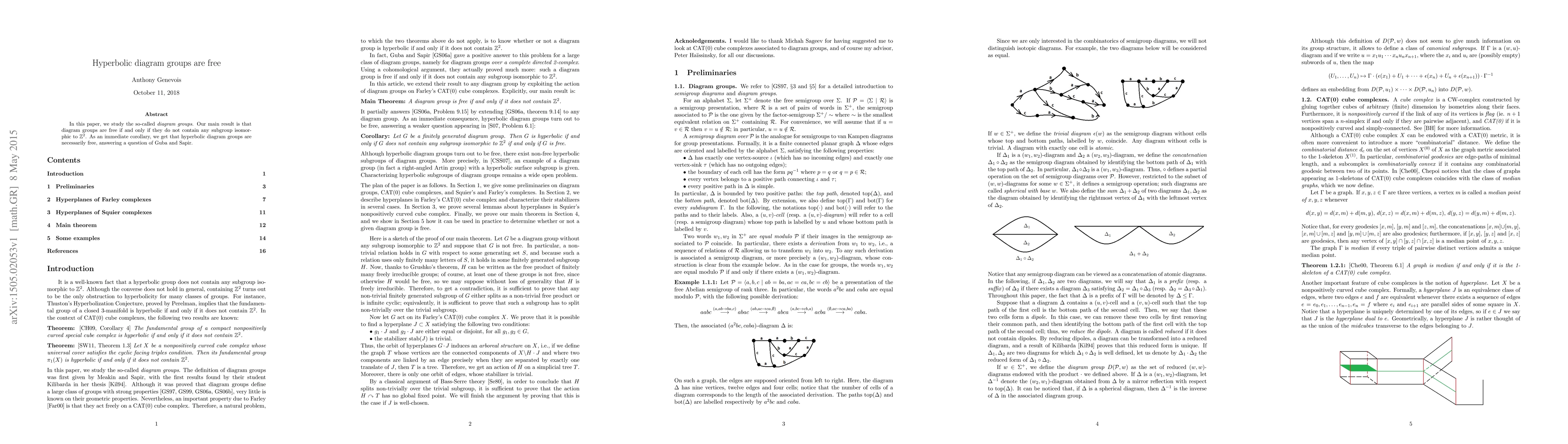 In this paper, we study the so-called diagram groups. Our main result is that diagram groups are free if and only if they do not contain any subgroup isomorphic to $\mathbb{Z}^2$. As an immediate corollary, we get that hyperbolic diagram groups are necessarily free, answering a question of Guba and Sapir.