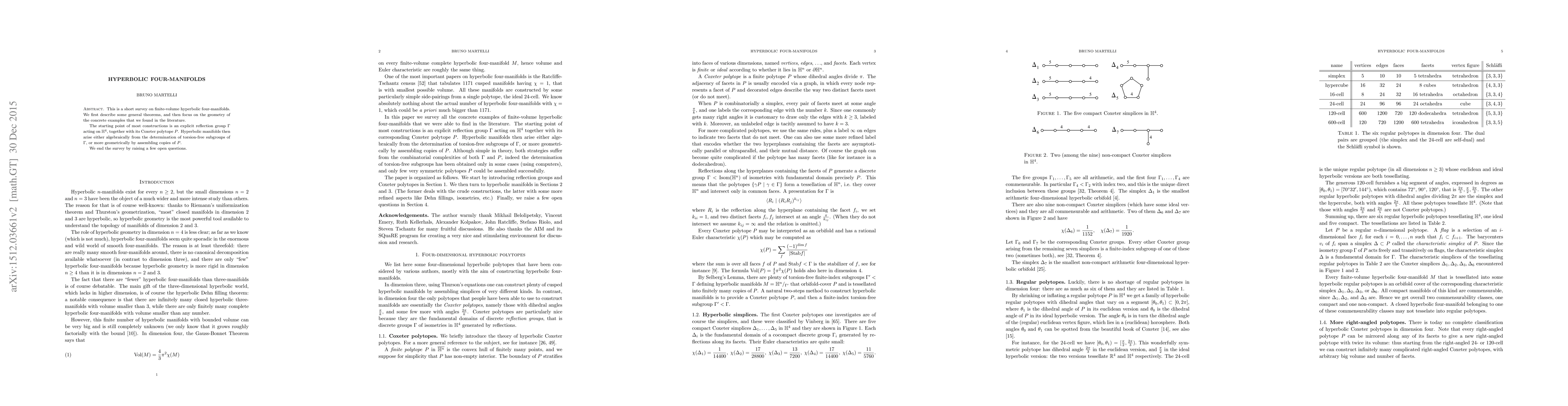 This is a short survey on finite-volume hyperbolic four-manifolds. We describe some general theorems and focus on the concrete examples that we found in the literature. The paper contains no new result.