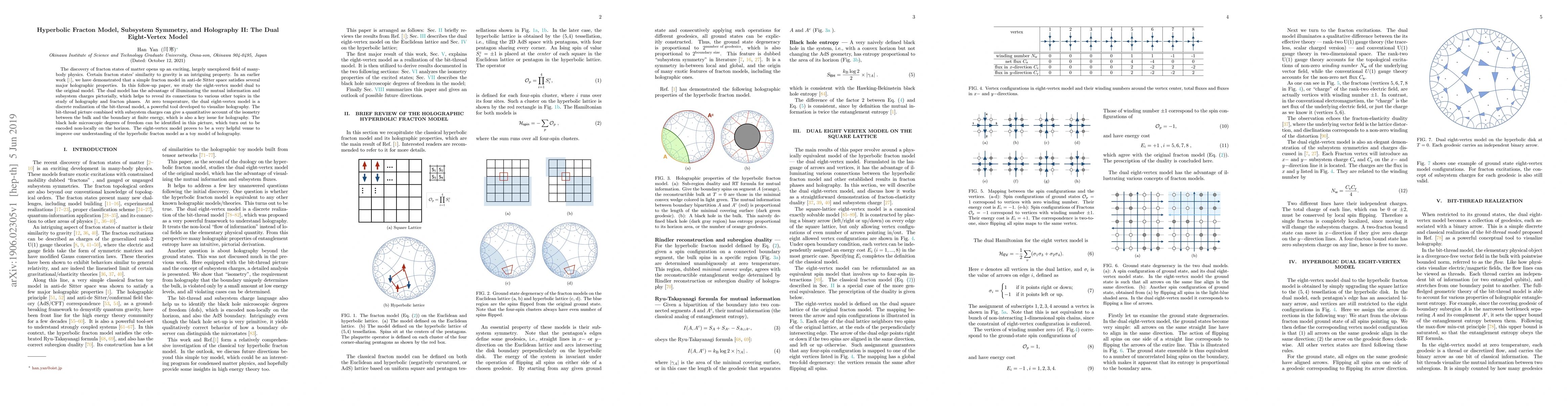 This paper explores the eight-vertex model, which serves as a dual to a previously studied hyperbolic fracton model, revealing insights into holography and subsystem symmetry. The model elucidates the connections between holography and fracton phases, providing a visual framework for understanding the isometry between bulk and boundary at finite energy.