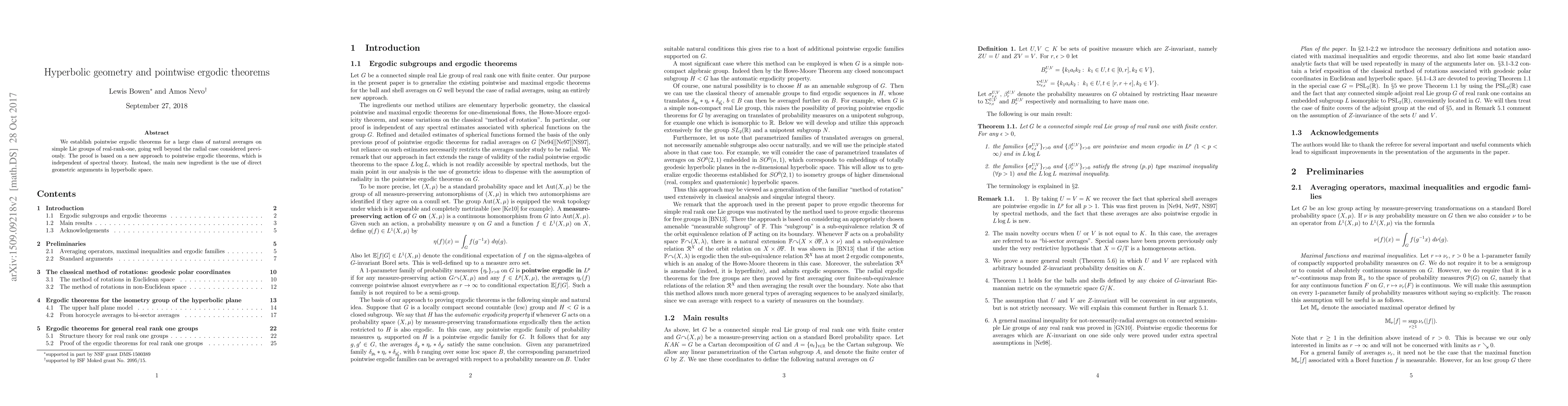 This paper establishes pointwise ergodic theorems for averages on simple Lie groups of real-rank-one, employing novel geometric arguments in hyperbolic space rather than spectral theory. The method extends beyond previously studied radial cases.
