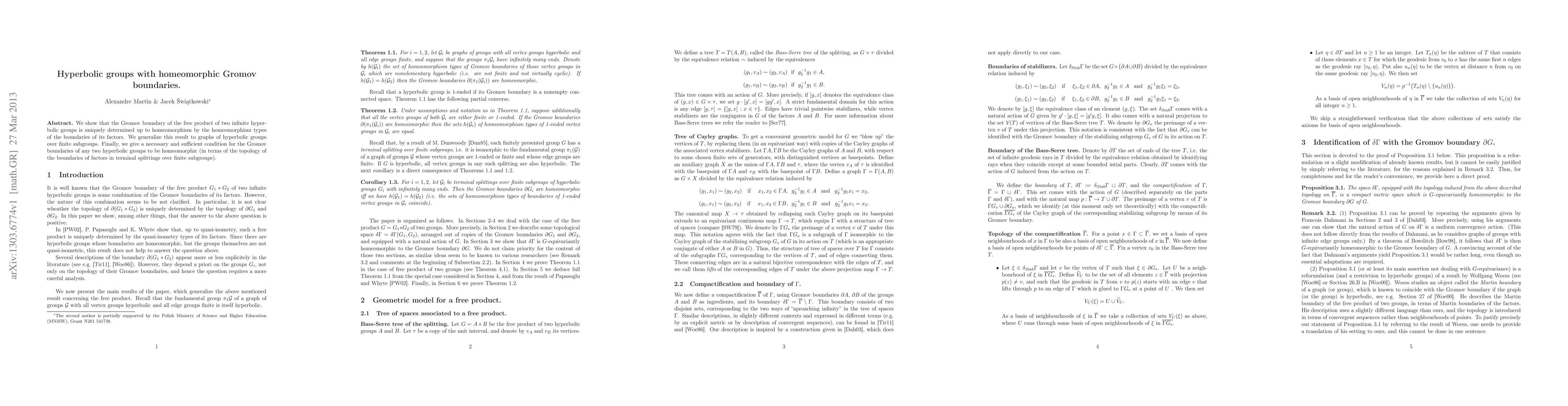 We show that the Gromov boundary of the free product of two infinite hyperbolic groups is uniquely determined up to homeomorphism by the homeomorphism types of the boundaries of its factors. We generalize this result to graphs of hyperbolic groups over finite subgroups. Finally, we give a necessary and sufficient condition for the Gromov boundaries of any two hyperbolic groups to be homeomorphic (in terms of the topology of the boundaries of factors in terminal splittings over finite subgroups).