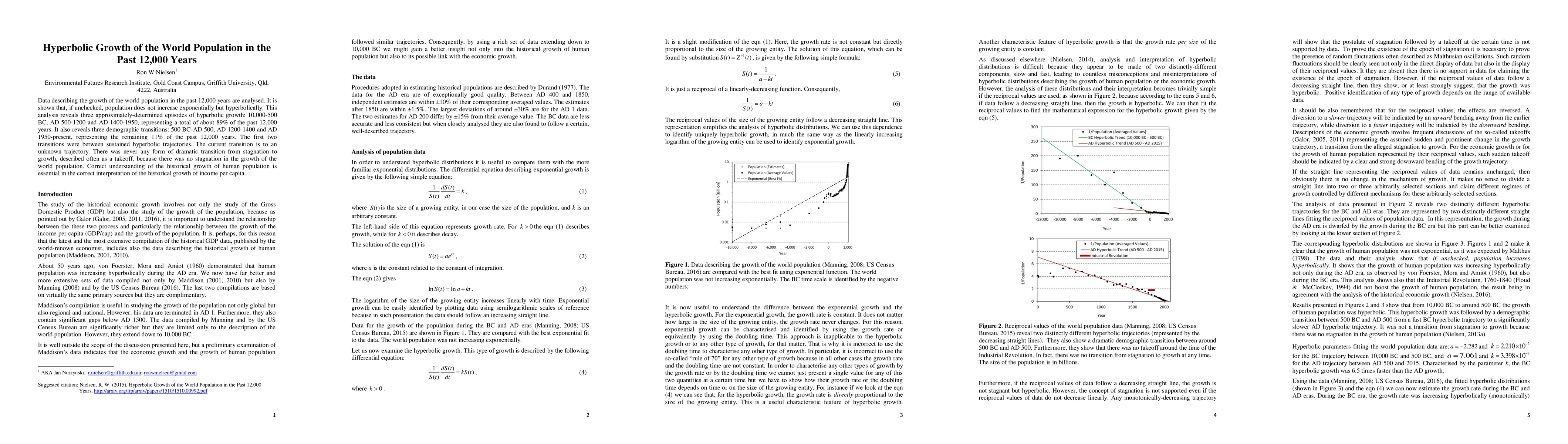 The world population grew hyperbolically over 89% of the past 12,000 years, with three distinct growth episodes separated by demographic transitions, challenging conventional views of a 'takeoff' period.