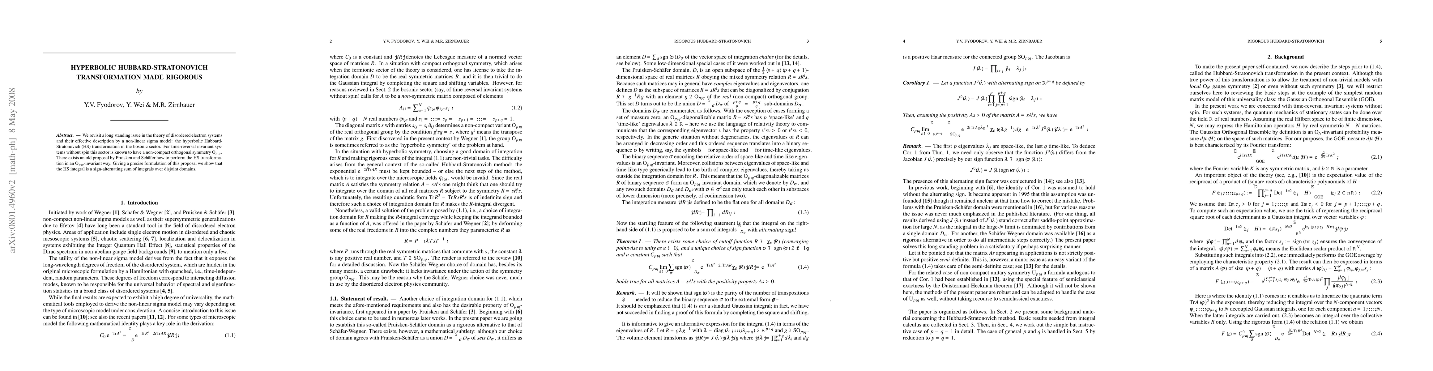 Researchers develop a rigorous method for performing a hyperbolic Hubbard-Stratonovich transformation in disordered electron systems, revealing that the integral is a sign-alternating sum of integrals over disjoint domains.