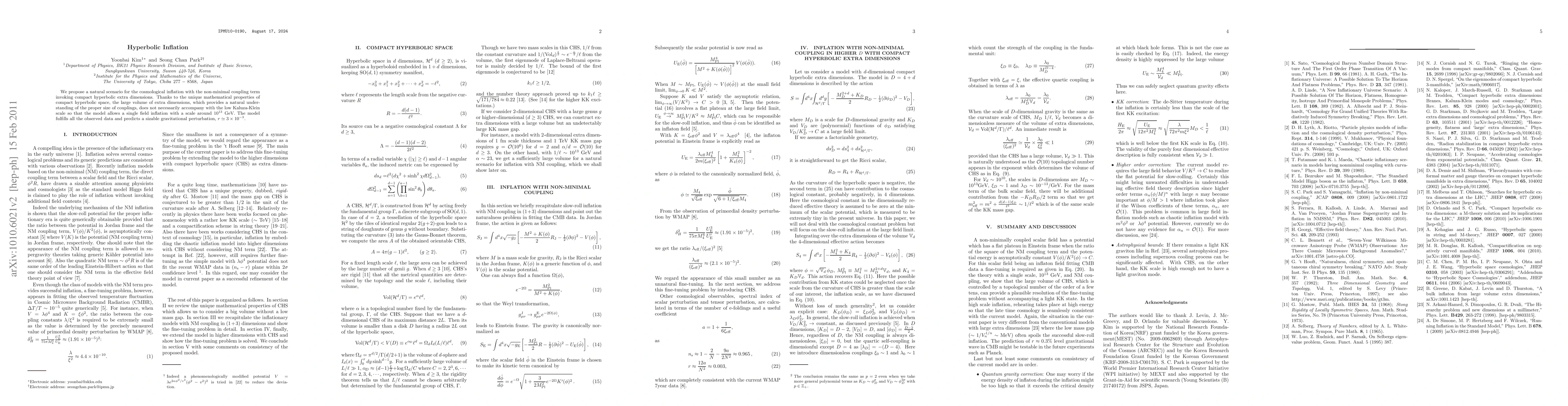 We propose a natural scenario for the cosmological inflation with the non-minimal coupling term invoking compact hyperbolic extra dimensions. Thanks to the unique mathematical properties of compact hyperbolic space, the large volume of extra dimensions, which provides a natural understanding of the proper size of couplings, does not necessarily accompany with the low Kaluza-Klein scale so that the model allows a single field inflation with a scale around $10^{13}$ GeV. The model fulfills all the observed data and predicts a sizable gravitational perturbation, r~0.003.
