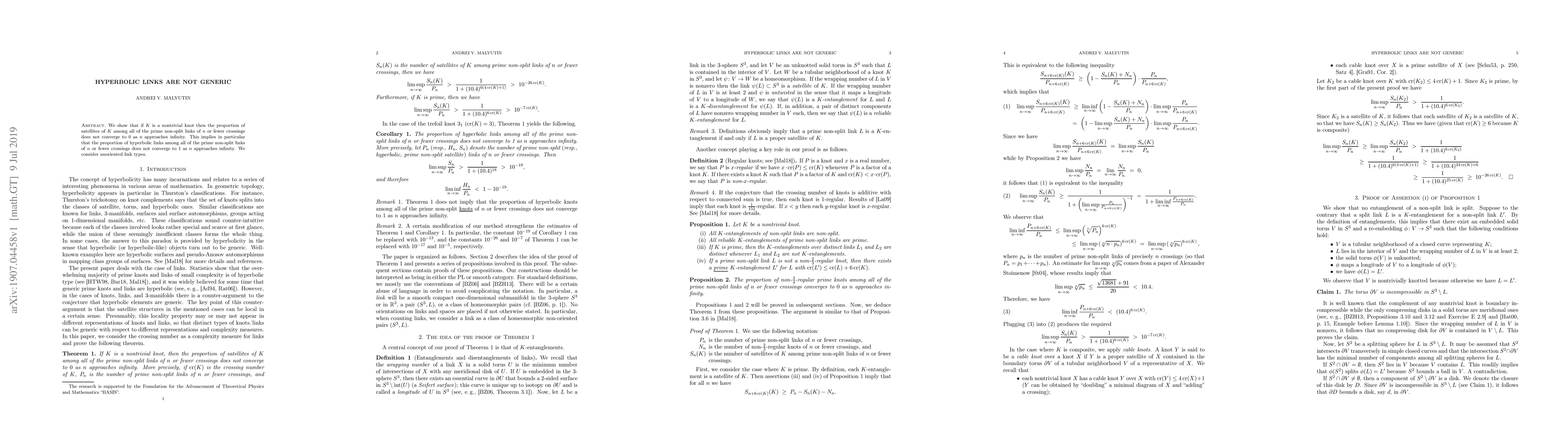 This paper demonstrates that hyperbolic links are not generic in the context of knot theory, showing that nontrivial knots maintain a non-vanishing proportion of satellite links among all prime non-split links as the number of crossings increases. Thus, hyperbolic links do not dominate as the complexity of links grows.