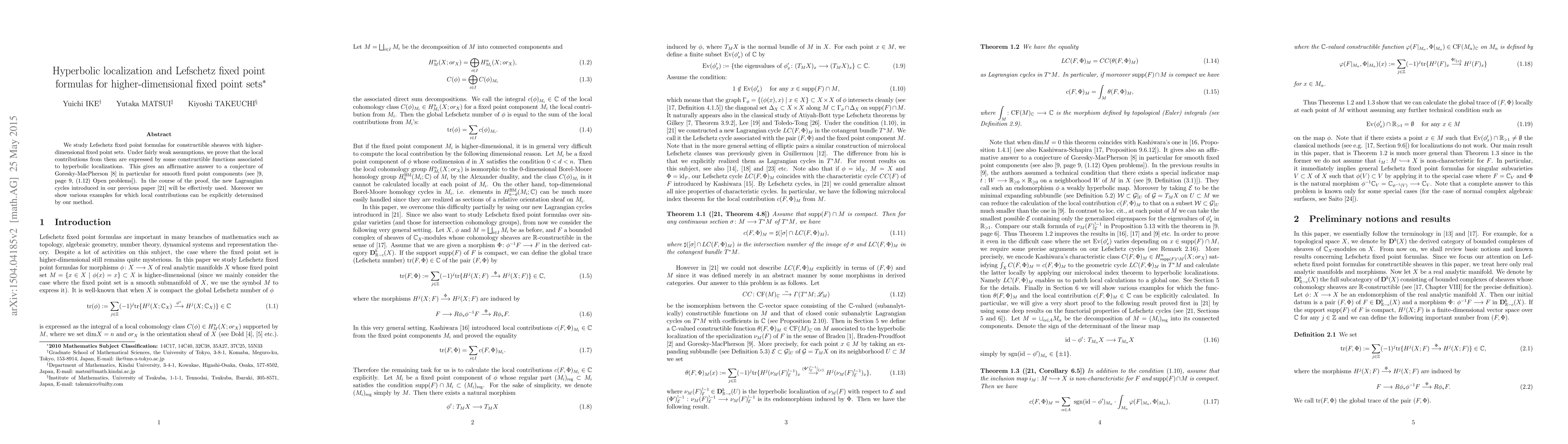 We study Lefschetz fixed point formulas for constructible sheaves with higher-dimensional fixed point sets. Under fairly weak assumptions, we prove that the local contributions from them are expressed by some constructible functions associated to hyperbolic localizations. This gives an affirmative answer to a conjecture of Goresky-MacPherson in particular for smooth fixed point components. In the course of the proof, the new Lagrangian cycles introduced in our previous paper will be effectively used. Moreover we show various examples for which local contributions can be explicitly determined by our method.