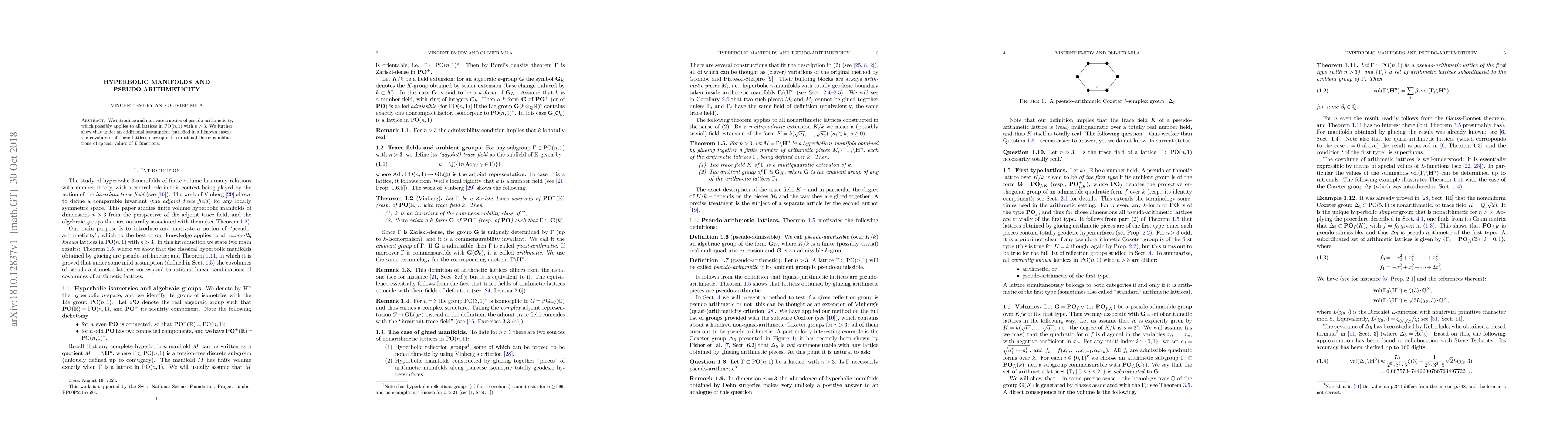 Summary: This paper proposes a concept of pseudo-arithmeticity applicable to lattices in $\mathrm{PO}(n,1)$ for $n>3$ and demonstrates that under certain assumptions, their covolumes relate to rational combinations of specific $L$-functions' values.