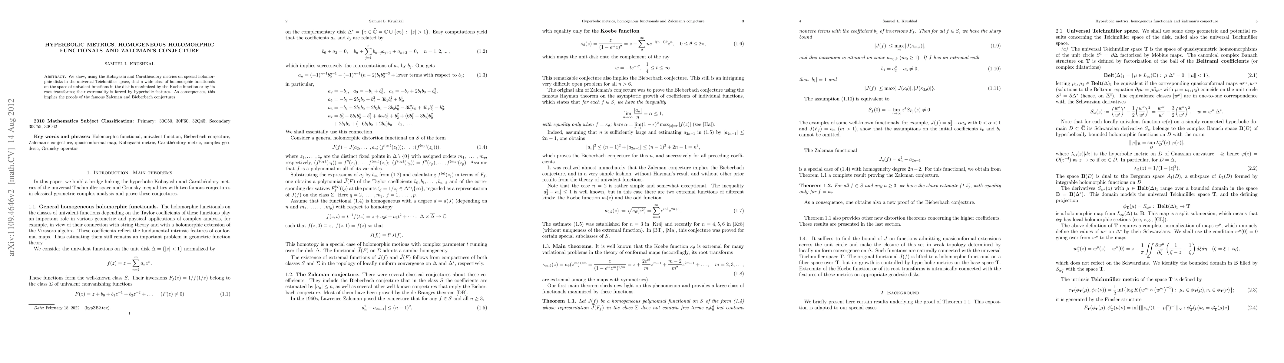 A paper proves that a specific class of holomorphic functionals on univalent functions in a disk is maximized by the Koebe function or its root transforms, resolving two famous conjectures with implications for hyperbolic geometry.