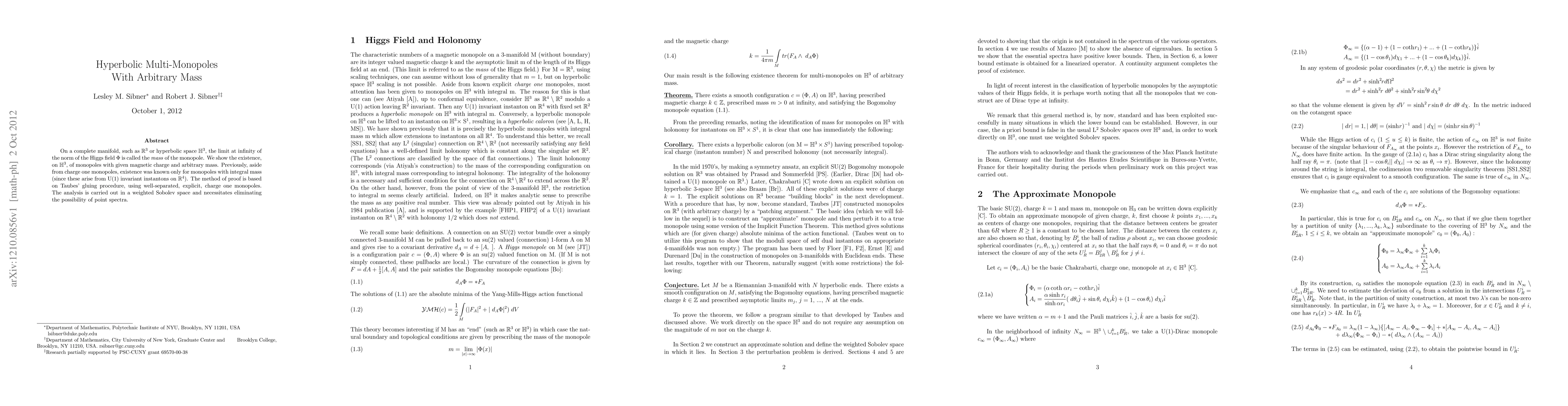 On a complete manifold, such as Euclidean 3-space or hyperbolic 3-space, the limit at infinity of the norm of the Higgs field is called the mass of the monopole. We show the existence, on hypebolic 3-space, of monopoles with given magnetic charge and arbitrary mass. Previously, aside from charge one monopoles, existence was known only for monopoles with integral mass (since these arise from U(1) invariant instantons on Euclidean 4-space). The method of proof is based on Taubes' gluing procedure, using well-separated, explicit, charge one monopoles. The analysis is carried out in a weighted Sobolev space and necessitates eliminating the possibility of point spectra.