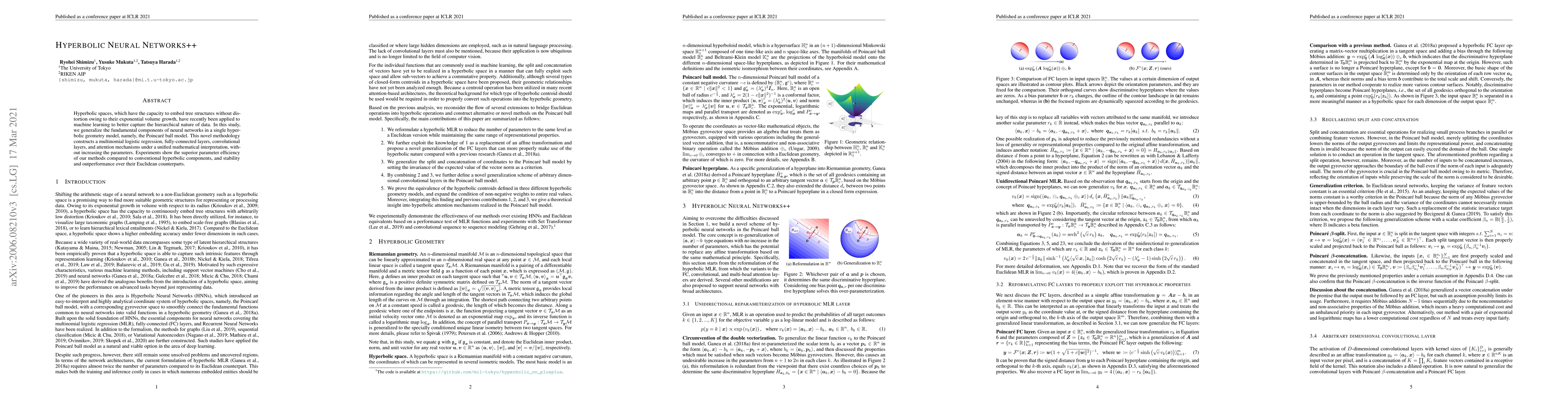 This paper proposes a novel hyperbolic neural network model based on the Poincaré ball model, integrating multinomial logistic regression, fully-connected, convolutional layers, and attention mechanisms. The approach demonstrates superior parameter efficiency and outperforms Euclidean counterparts in experiments.