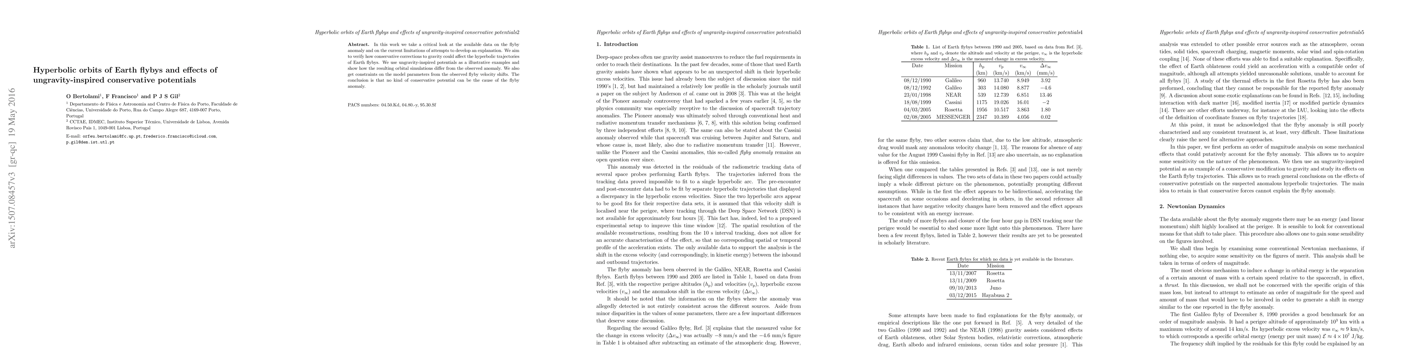 This paper investigates the flyby anomaly and explores conservative potentials inspired by ungravity to explain hyperbolic Earth flyby trajectories. The study concludes that no such potentials can account for the observed anomaly, based on orbital simulations and constraints derived from flyby velocity shifts.
