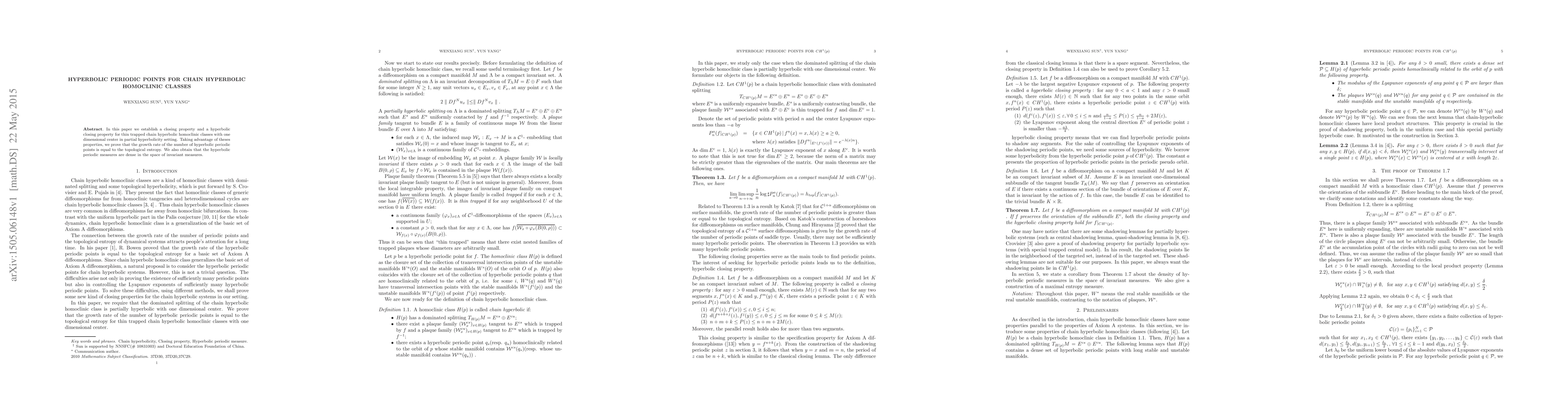 This paper establishes closing and hyperbolic closing properties for thin trapped chain hyperbolic homoclinic classes with one-dimensional centers, proving that the growth rate of hyperbolic periodic points equals the topological entropy and that hyperbolic periodic measures are dense in the space of invariant measures.