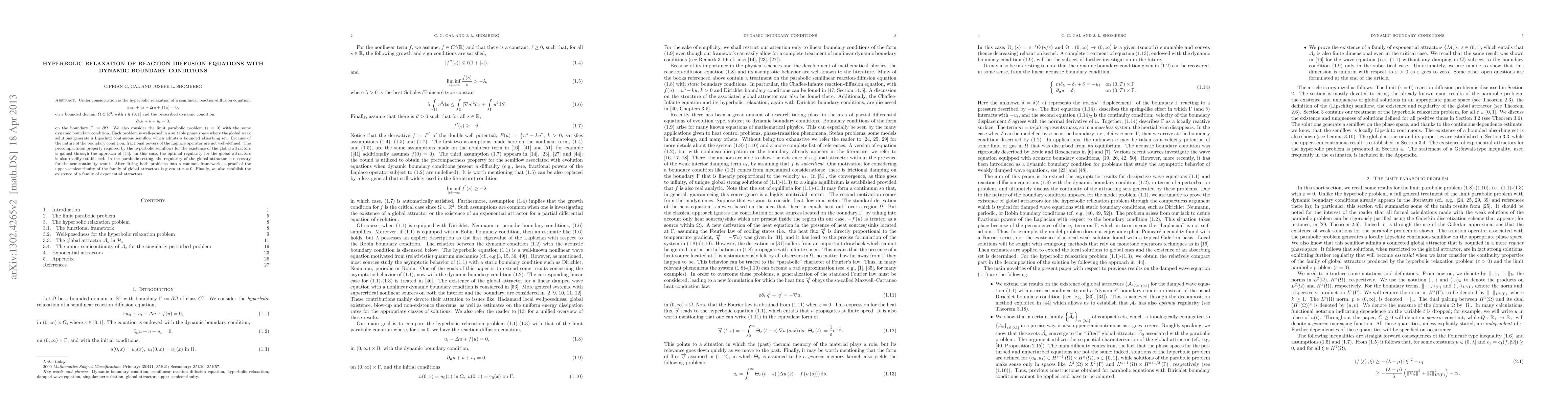 This paper investigates the hyperbolic relaxation of reaction-diffusion equations with dynamic boundary conditions, proving the existence of a family of global attractors and exponential attractors. The study also demonstrates the upper-semicontinuity of these attractors as the relaxation parameter approaches zero.