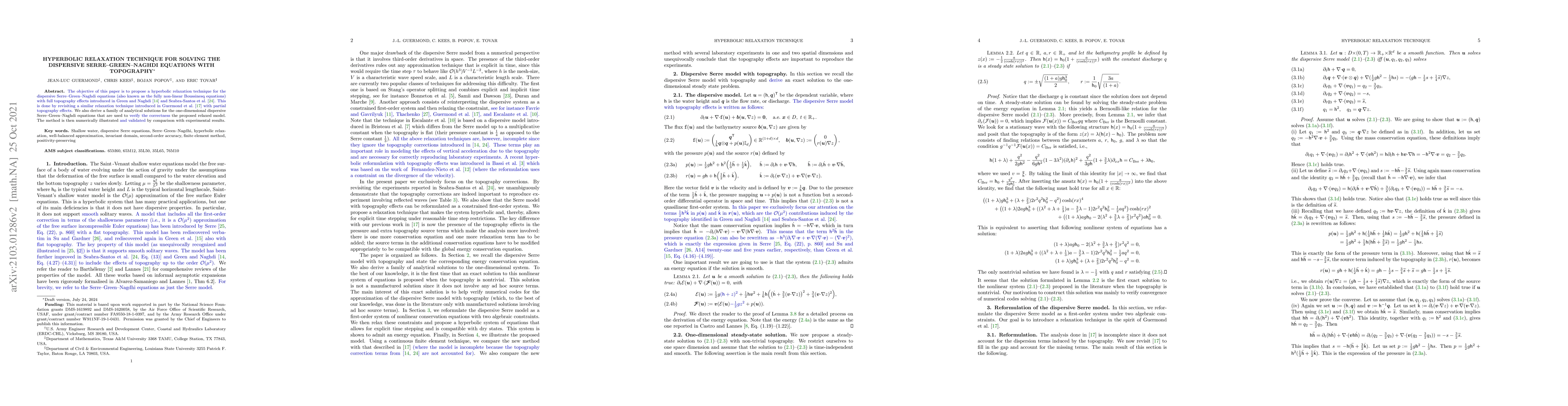 This paper proposes a hyperbolic relaxation technique to solve the dispersive Serre-Green-Naghdi equations with full topography effects, extending a previous technique with partial topography. Analytical solutions are derived to verify the model's correctness, and numerical results are validated against experimental data.