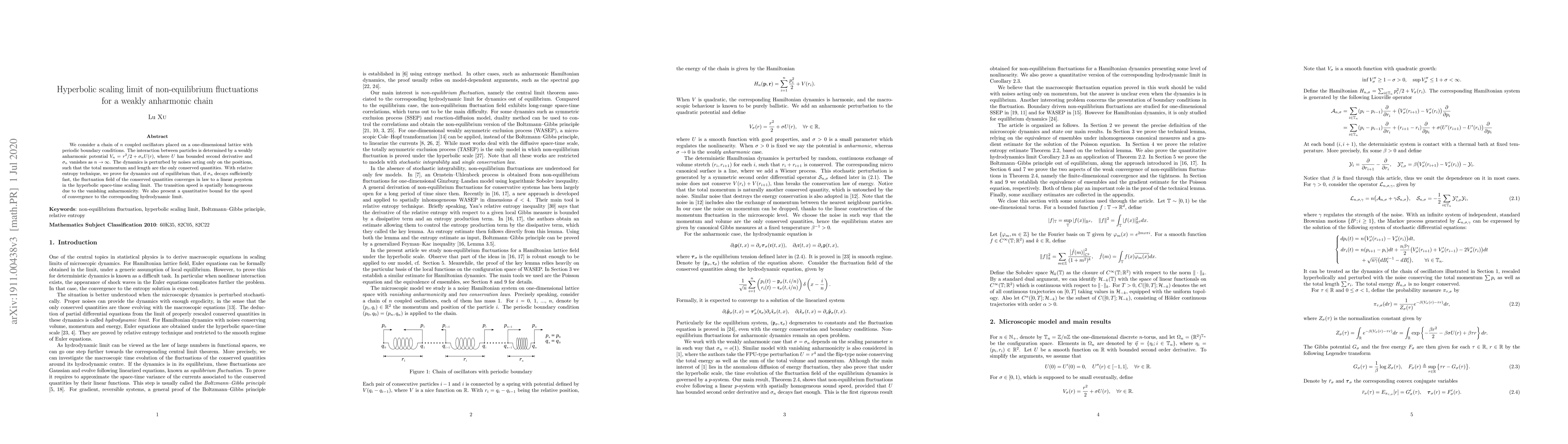 We consider a chain of $n$ coupled oscillators placed on a one-dimensional lattice with periodic boundary conditions. The interaction between particles is determined by a weakly anharmonic potential $V_n = r^2/2 + \sigma_nU(r)$, where $U$ has bounded second derivative and $\sigma_n$ vanishes as $n \to \infty$. The dynamics is perturbed by noises acting only on the positions, such that the total momentum and length are the only conserved quantities. With relative entropy technique, we prove for dynamics out of equilibrium that, if $\sigma_n$ decays sufficiently fast, the fluctuation field of the conserved quantities converges in law to a linear $p$-system in the hyperbolic space-time scaling limit. The transition speed is spatially homogeneous due to the vanishing anharmonicity. We also present a quantitative bound for the speed of convergence to the corresponding hydrodynamic limit.