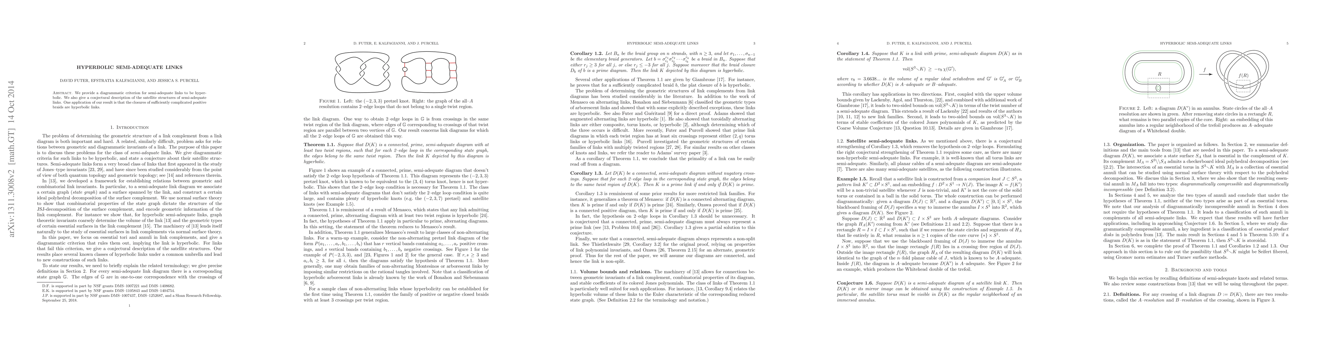 Summary: This paper establishes a diagrammatic criterion for determining if semi-adequate links are hyperbolic and proposes a conjecture regarding their satellite structures. It also demonstrates that sufficiently complex positive braid closures result in hyperbolic links.